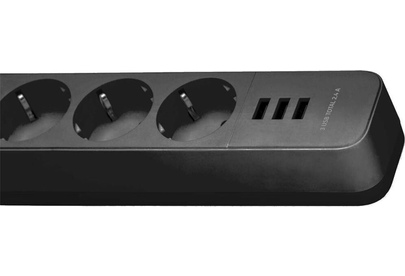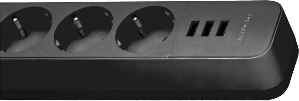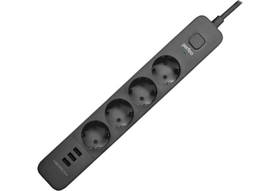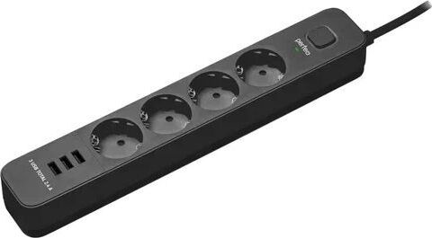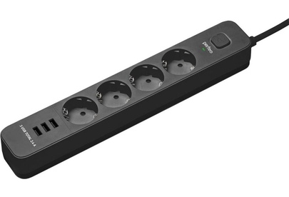 Сетевой фильтр 4 евророзетки и 3 USB порта на 2.4A, Длина 2м, Номинальный ток 10А, Максимальная нагрузка 2500Вт, Варисторная защита и защитные шторки для детей. Есть крепление на стену.