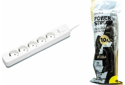 Сетевой фильтр Power Stream 5 розеток, длина 1,5м, номинальный ток 10А, максимальная нагрузка 2500Вт, варисторная защита, защитные шторки для детей, крепление на стену.