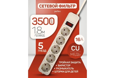 Сетевой фильтр Perfeo "REAL POWER" — надежная защита вашей техники 16А Мощный сетевой фильтр с 5 розетками для одновременного подключения всей вашей электроники и бытовой техники. Безопасность и функциональность в современном дизайне. Тройная защита: • Защита от перегрузки • Защита от короткого замыкания • Защита от импульсных помех Мощные характеристики: • 5 розеток с заземлением • Максимальный ток: 16А • Мощность: 3500 Вт • Напряжение: 220-240 В • Световой индикатор работы Преимущества: • Подходит для энергоемкой техники (кондиционеры, обогреватели, компьютеры) • Прочный негорючий корпус • Компактный эргономичный дизайн • Стильный серый цвет • Долговечные контакты Идеальное применение: • Домашний кинотеатр и аудиосистема • Рабочее место с компьютерной техникой • Кухня с бытовой техникой • Офисные помещения Гарантия качества и безопасности! Сетевой фильтр Perfeo "REAL POWER" — это разумный выбор для тех, кто ценит надежность и защиту своей электроники от любых перепадов напряжения!