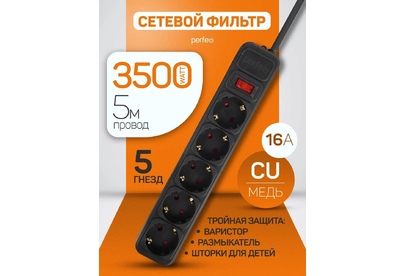 Сетевой фильтр Perfeo "REAL POWER" — надежная защита вашей техники 16А Мощный сетевой фильтр с 5 розетками для одновременного подключения всей вашей электроники и бытовой техники. Безопасность и функциональность в современном дизайне. Тройная защита: • Защита от перегрузки • Защита от короткого замыкания • Защита от импульсных помех Мощные характеристики: • 5 розеток с заземлением • Максимальный ток: 16А • Мощность: 3500 Вт • Напряжение: 220-240 В • Световой индикатор работы Преимущества: • Подходит для энергоемкой техники (кондиционеры, обогреватели, компьютеры) • Прочный негорючий корпус • Компактный эргономичный дизайн • Стильный серый цвет • Долговечные контакты Идеальное применение: • Домашний кинотеатр и аудиосистема • Рабочее место с компьютерной техникой • Кухня с бытовой техникой • Офисные помещения Гарантия качества и безопасности! Сетевой фильтр Perfeo "REAL POWER" — это разумный выбор для тех, кто ценит надежность и защиту своей электроники от любых перепадов напряжения!
