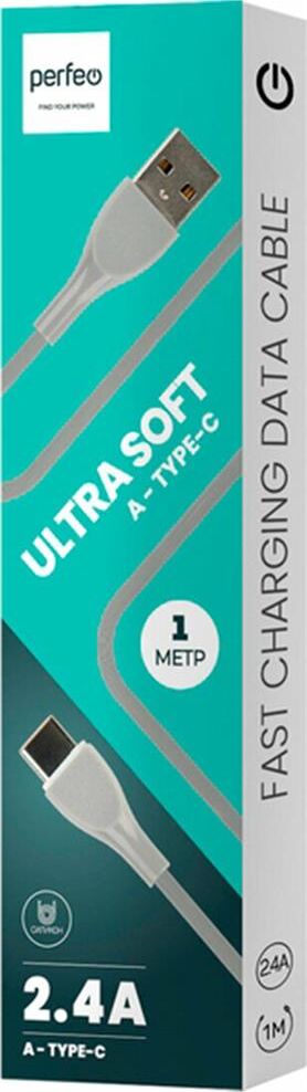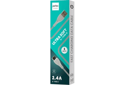 PERFEO (U4711) USB A вилка - Type-C вилка, 2.4A, серый, силикон, длина 1 м., ULTRA SOFT
