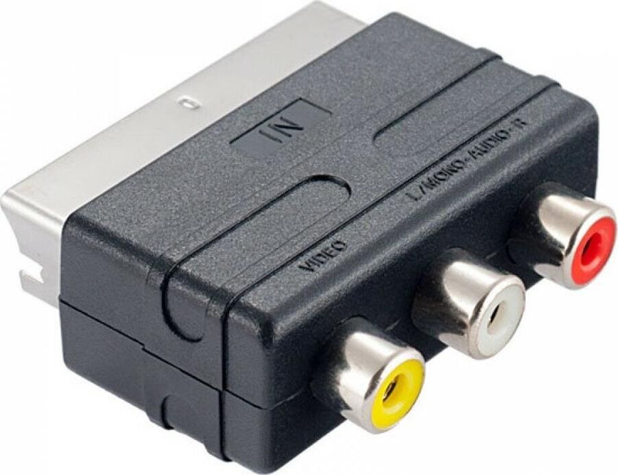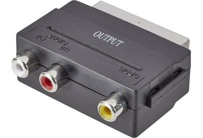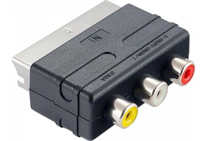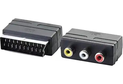 Переходник SCART (21 pin) вилка - 3xRCA розетка. Предназначен для передачи аналогового стереозвукового сигнала и композитного аналогового видеосигнала между аудио и аудио-видео устройствами или их компонентами. Переходник имеет направленность - разъем SCART подключается к приемнику сигналов.