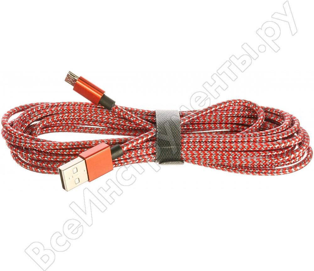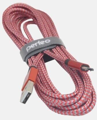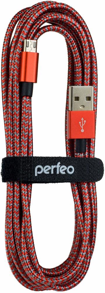 PERFEO Кабель USB2.0 A вилка - Micro USB вилка, красно-белый, длина 3 м. (U4804)