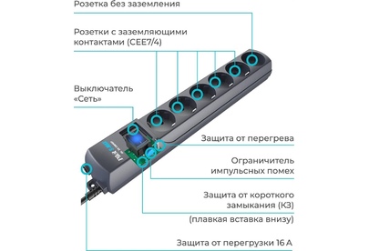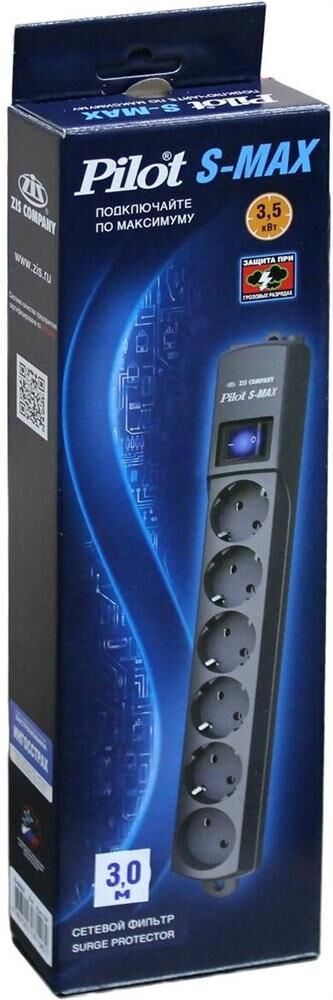 PILOT S-MAX 3м (6 розеток) серый (коробка)