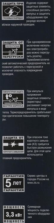Входная вилка, тип: EURO. Длина шнура: 5. Номинальная мощность: 3300. Номинальный ток: 15. Номинальное напряжение питающей сети: 220. Частота сети: 50. Максимальный импульсный ток помехи: 10000. Подавление импульсных помех: да. Максимальная рассеиваемая энергия: 150. Защита от короткого замыкания: плавкий предохранитель. Защита от перегрева: термопредохранитель. Количество выходных розеток: 4. Габариты упаковки (ед) ДхШхВ: 0.335x0.15x0.067. Вес упаковки (ед): 0.79. Гарантия: 60 мес.. Цвет: серый. Количество выходных розеток: 4. Номинальная мощность: 3300 ВA. Входная вилка: EURO. Длина шнура: 5 м