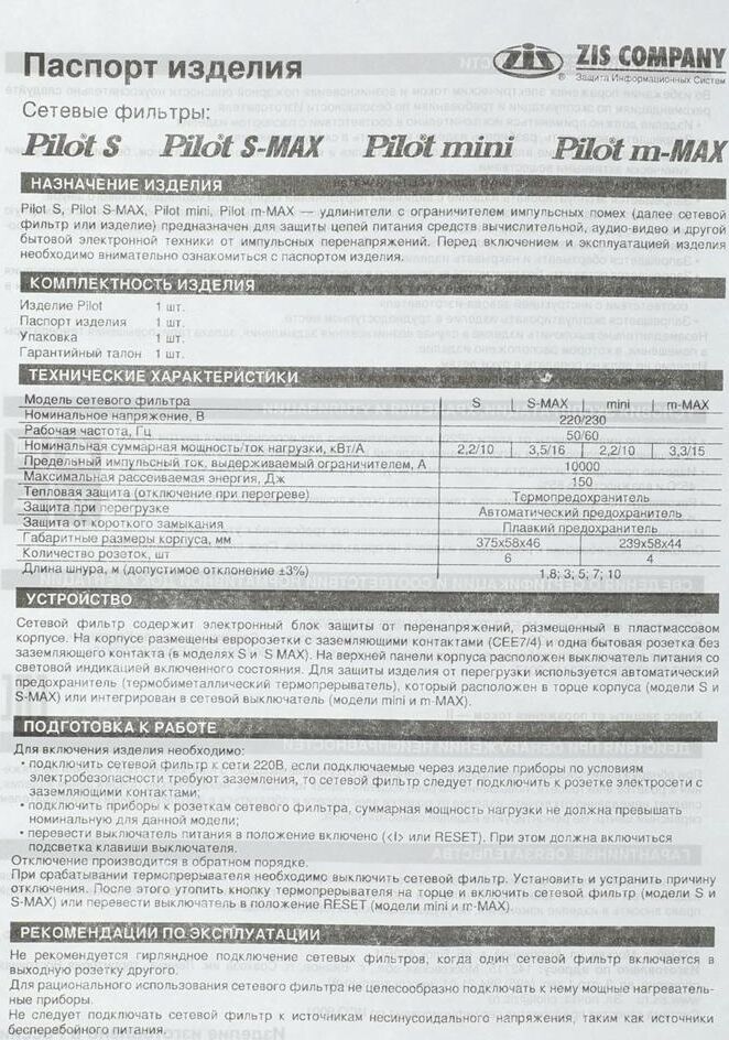 PILOT Сетевой фильтр m-MAX, 5м, серый [145]