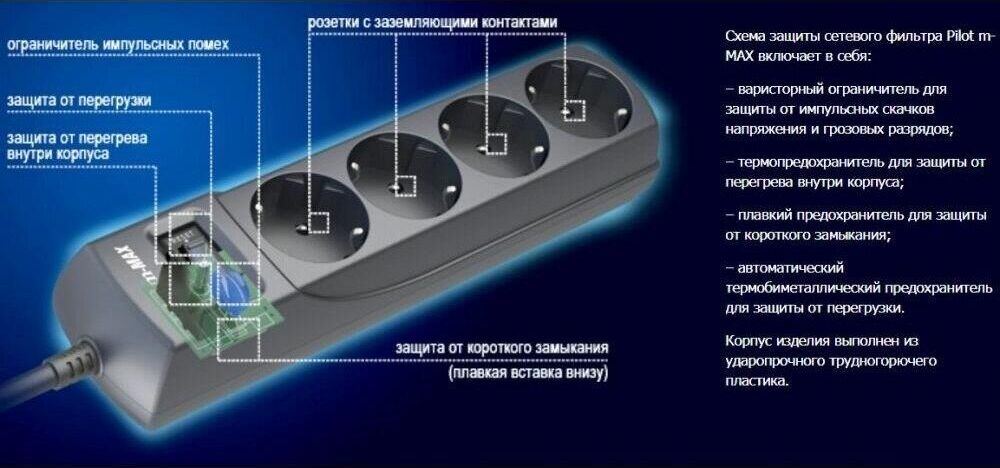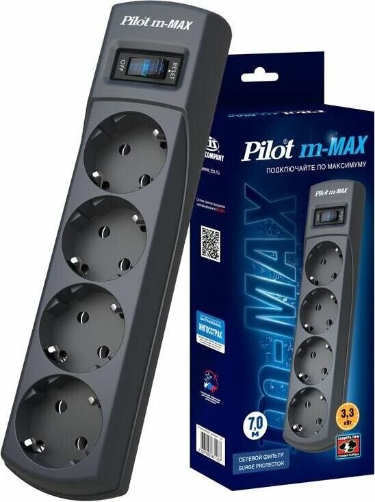 PILOT Сетевой фильтр m-MAX 7м (4 розетки) серый (коробка)