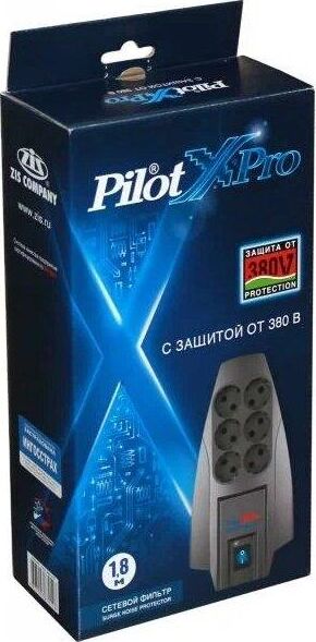 PILOT Сетевой фильтр X-Pro 1.8м (6 розеток) серый (коробка)