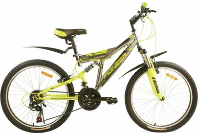 Размер колеса: 24"Назначение: ПОДРОСТКОВЫЕТип: ГОРНЫЙ ДВУХПОДВЕСРазмер рамы: 15"Материал рамы: стальКоличество скоростей: 21Серия переключателей скоростей: PIONEERВилка: амортизирующая, GOODТормоза передние/задние: V-brake/V-brakeПокрышки: PIONEER, 24"x2,125