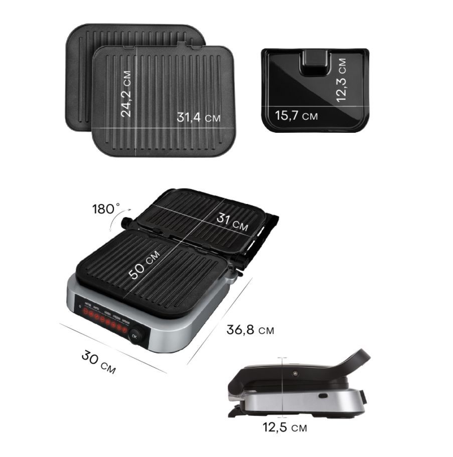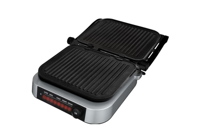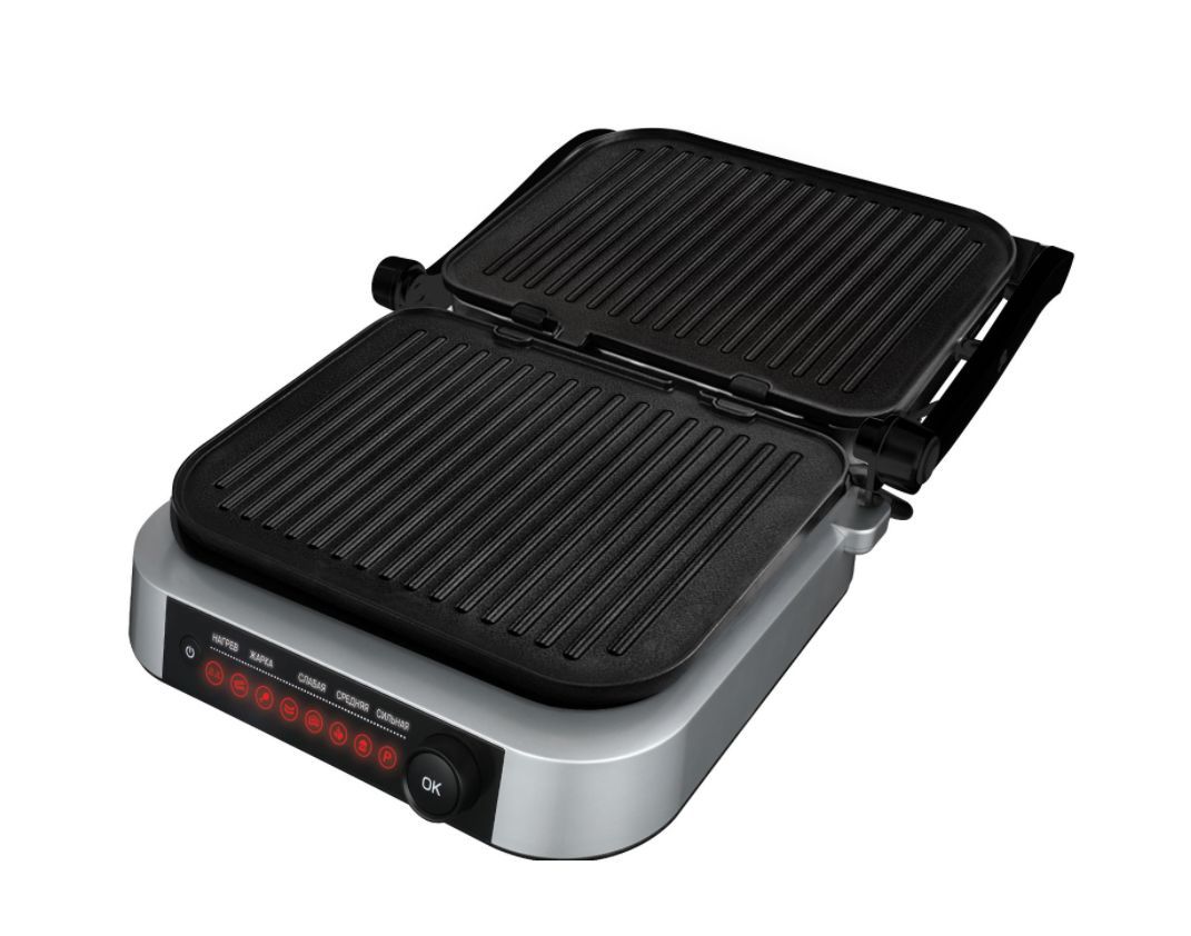 PIONEER GR1020E(13984) Тип управления: электронное Количество автоматических программ: 7 Ручной режим работы: есть Регулировка температуры: 70-230 °С Автоматическое определение толщины стейка и времени приготовления: есть Варианты использования гриля: открытый/закрытый Съемные нагревательные панели: есть Покрытие нагревательных панелей: антипригарное Съемный поддон для сбора жира: есть Индикаторы: питания, нагрева Защита от перегрева: есть Комплектация: электрический гриль, 2 съемный панели, поддон для сбора жира, гарантийный талон, инструкция на русском языке Материал корпуса: сталь Цвет: черный с серебристым Размер упаковки, см. (ВхШхГ): 38.3x20.1x43 Вес в упаковке, кг.: 6.1 Максимальная потребляемая мощность, Вт.: 2100 Электропитание, в., Гц.: 220-240, 50