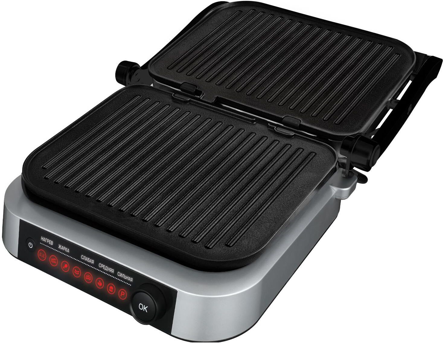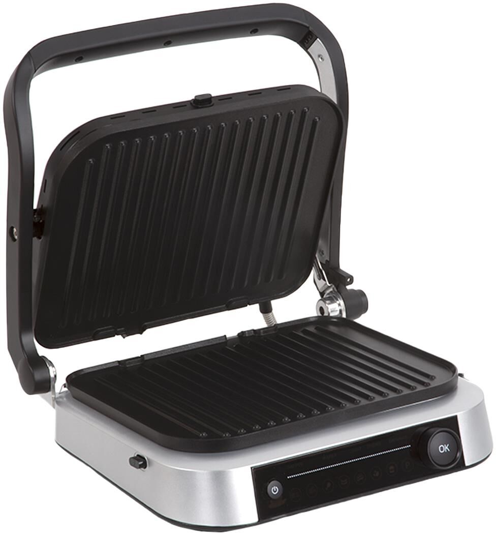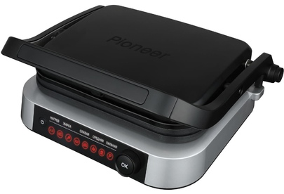 PIONEER GR1020E(13984) Тип управления: электронное Количество автоматических программ: 7 Ручной режим работы: есть Регулировка температуры: 70-230 °С Автоматическое определение толщины стейка и времени приготовления: есть Варианты использования гриля: открытый/закрытый Съемные нагревательные панели: есть Покрытие нагревательных панелей: антипригарное Съемный поддон для сбора жира: есть Индикаторы: питания, нагрева Защита от перегрева: есть Комплектация: электрический гриль, 2 съемный панели, поддон для сбора жира, гарантийный талон, инструкция на русском языке Материал корпуса: сталь Цвет: черный с серебристым Размер упаковки, см. (ВхШхГ): 38.3x20.1x43 Вес в упаковке, кг.: 6.1 Максимальная потребляемая мощность, Вт.: 2100 Электропитание, в., Гц.: 220-240, 50