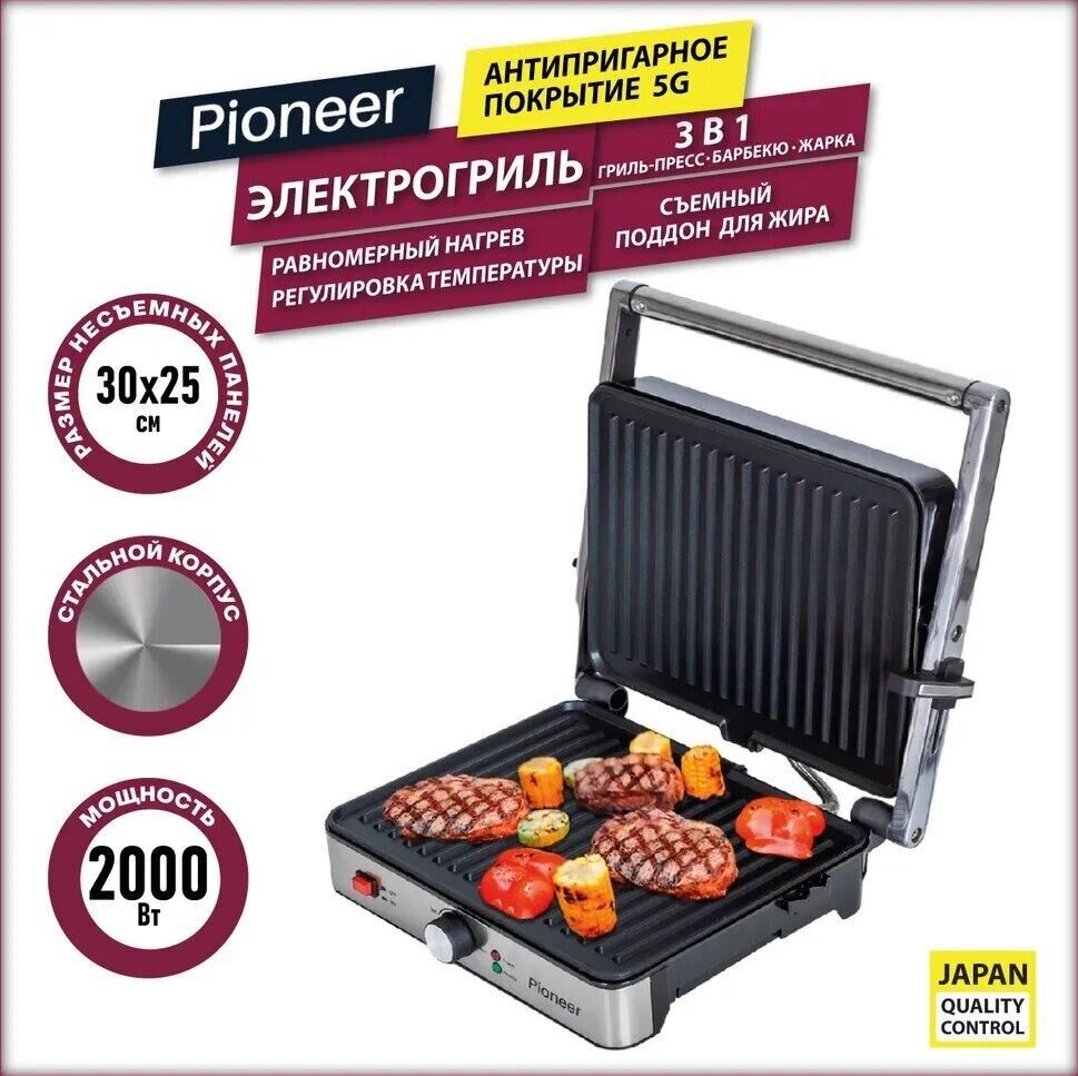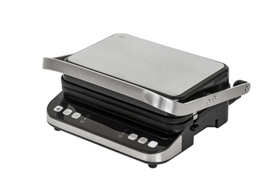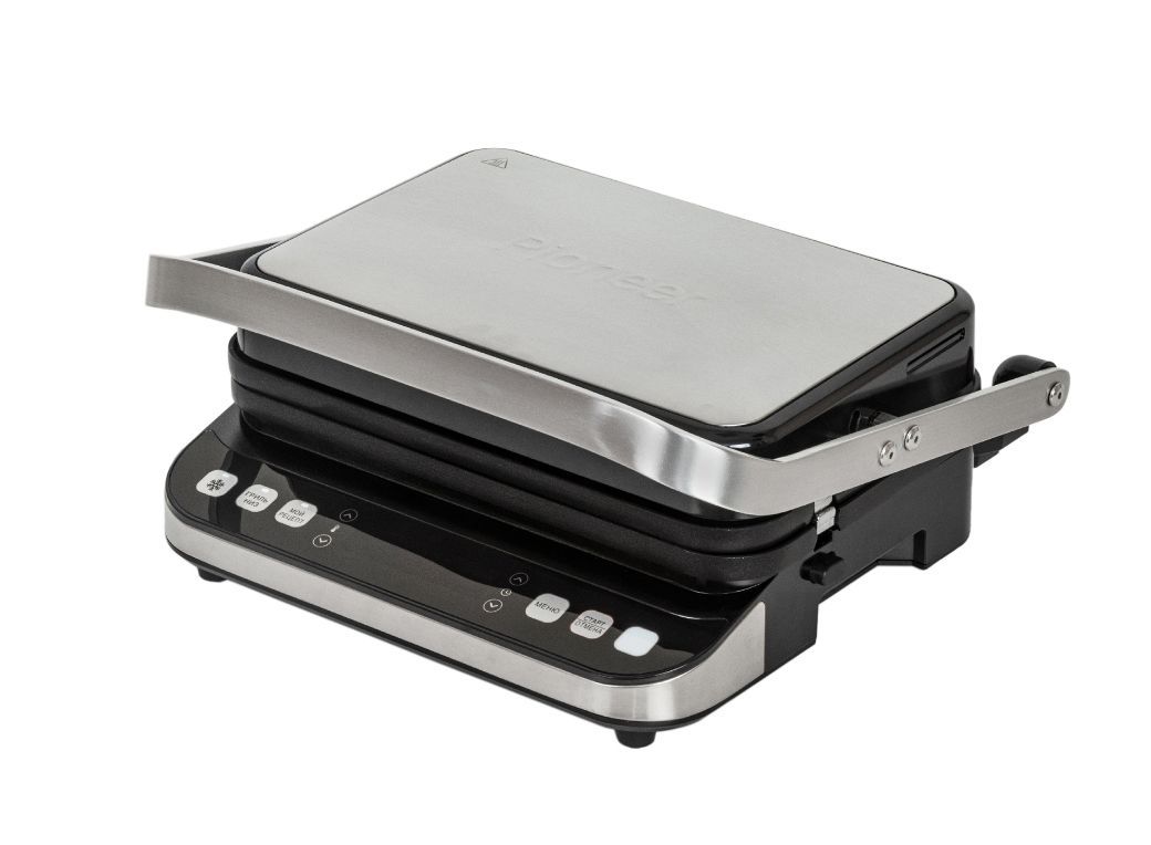 Максимальная мощность, Вт.: верхний нагрев 1000 Вт; нижний нагрев 1000 Вт Количество автоматических программ: 6 Ручной режим работы: есть Регулировка температуры: есть Регулировка времени: есть Варианты использования гриля: открытый/закрытый Съемные нагревательные панели: есть Покрытие нагревательных панелей: антипригарное Размер панелей, мм.: 320x220 Независимый нагрев панелей: есть Панели можно мыть в посудомоечной машине: да Съемный поддон для сбора жира: есть Функция размораживания: есть Индикаторы: индикатор цвета для напоминания о процессе приготовления Дисплей: есть, LED Комплектация: электрический гриль, двухсторонние панели с гладкой и гриль стороной, панель для венских и бельгийских вафель, термощуп для измерения температуры внутри продукта, гарантийный талон, инструкция на русском Материал корпуса: нержавеющая сталь Цвет: серебристый Электропитание, в., Гц.: 220-240, 50