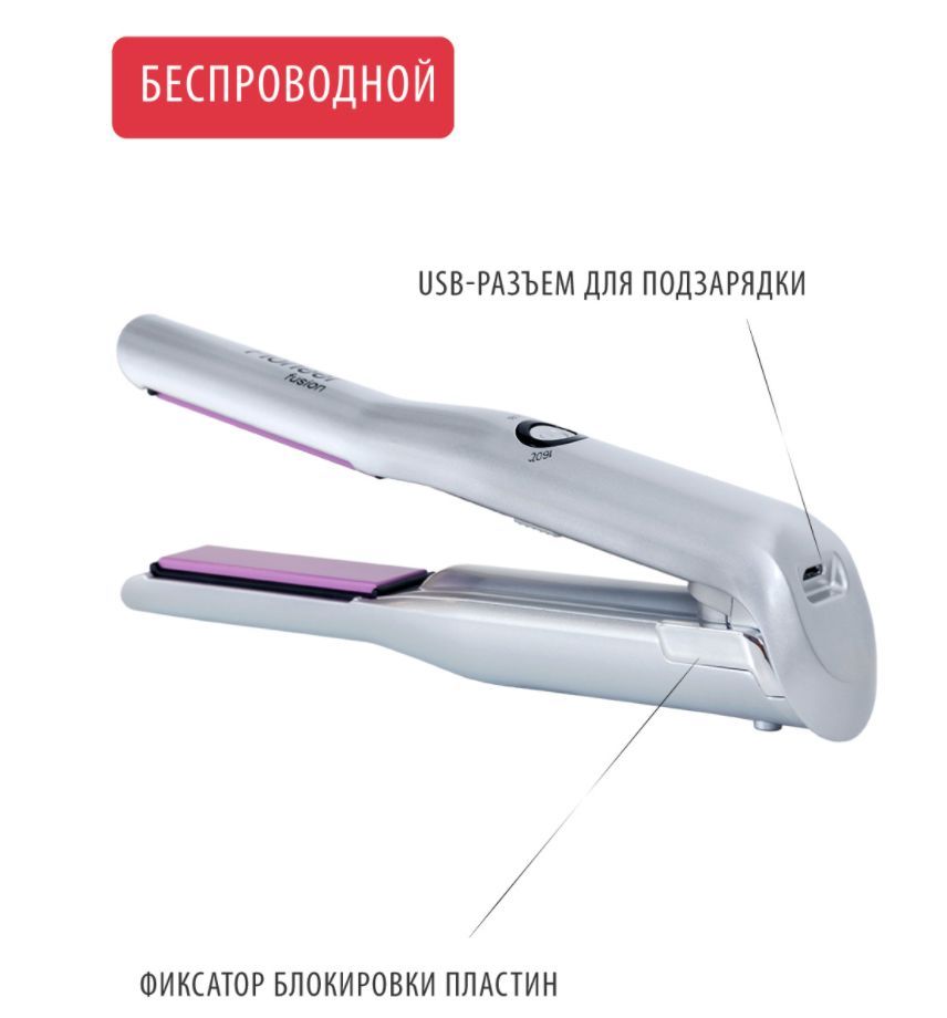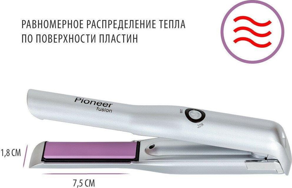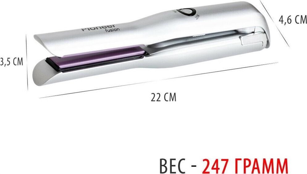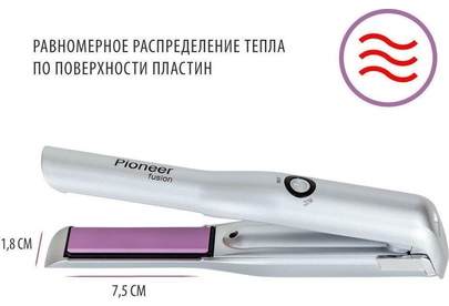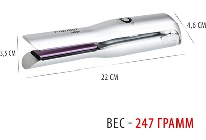 Выпрямитель для волос беспроводной Pioneer HS-1008R Керамическое покрытие пластин Размер рабочих пластин: 18x75 мм Время зарядки батареи: 3 ч Время работы от полностью заряженной батареи: 30 мин Время нагрева до 160°С: 3 мин 3 режима нагрева: 160°С, 180°С, 200°С Блокировка пластин Размер прибора: 215х40 мм USB кабель