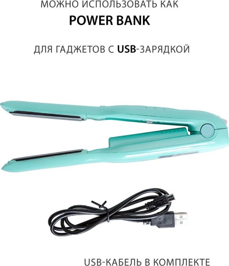 Беспроводной стайлер для выпрямления волос Pioneer HS-1016R + POWER BANK Керамические рабочие пластины Размер рабочих пластин: 70 x 16 мм Индикация питания/заряда аккумулятора/ температуры нагрева пластин Блокировка пластин POWER BANK для зарядки смартфона, планшета или другого электронного прибора с USB Micro USB порт для подключения источника питания Время заряда батареи 3,5 часа Время беспрерывной работы : 35 мин. при температуре нагрева 160°С 31 мин. при температуре 180°С 28 мин. - при температуре 200°С. Время нагрева до 200°С: 3-4 мин Аккумуляторная батарея: 3,7 В, 4000 мАч