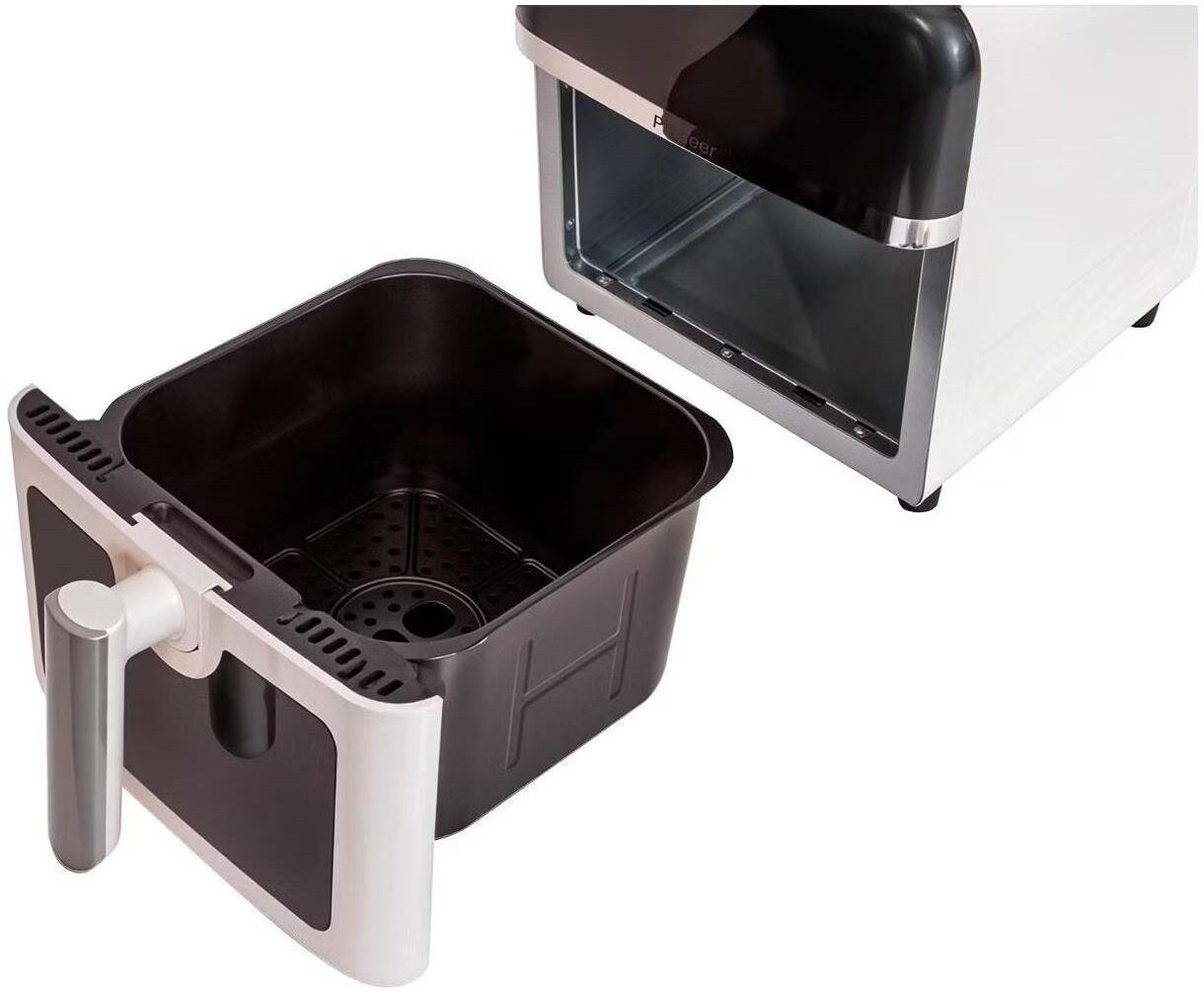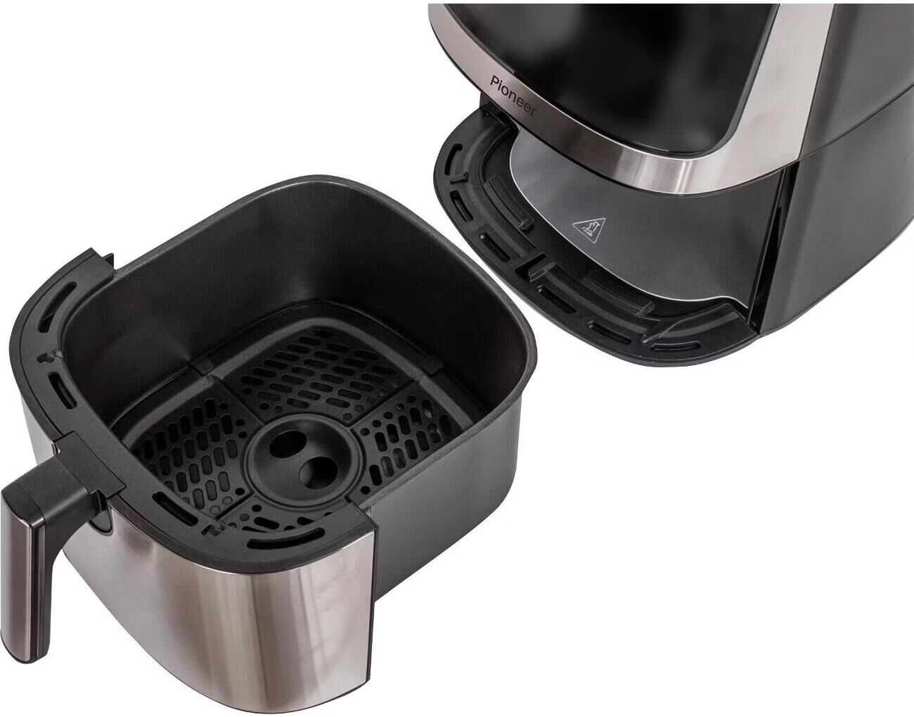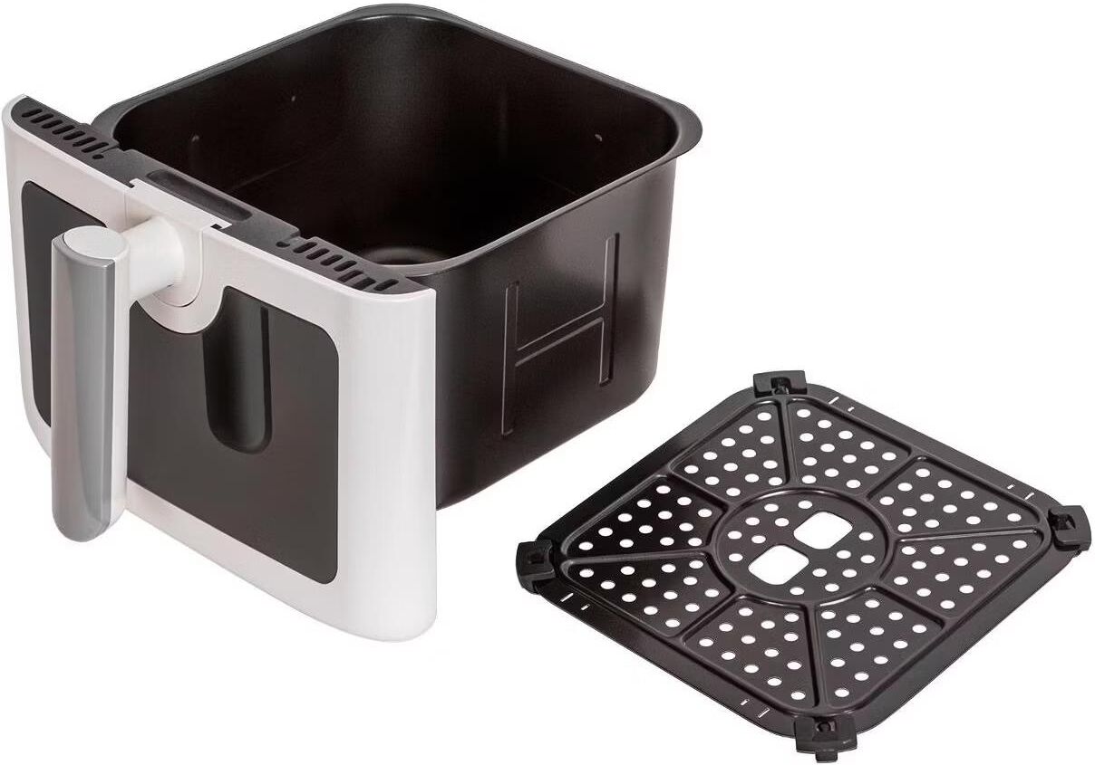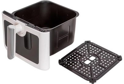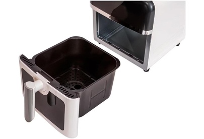 Аэрогриль, электронное управление, цветной светодиодный дисплей, мощность: 1850 Вт, внутренний объем камеры: 8 Л, функция приготовления на пару, антипригарное покрытие, смотровое окно , внутренняя подсветка, таймер: до 60 минут, регулируемая температура: 80 -200 градусов, ручная настройка режимов приготовления, 10 предустановленных программ приготовления: замороженный картофель фри, выпечка, сладкий картофель, пицца, рыба, креветки, стейк, куриные ножки, куриные крылышки, арахис, технология "Fry Force 360°" позволяет готовить блюда быстро и равномерно, практически без масла
