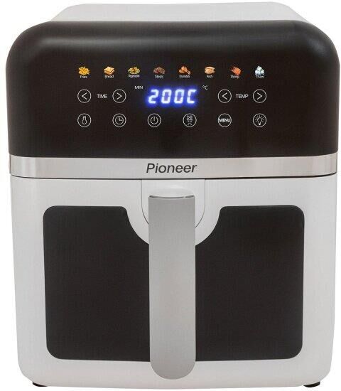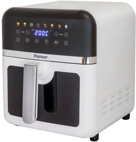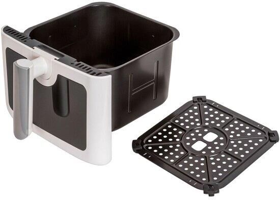 Аэрогриль, полностью металлический корпус, цифровое сенсорное управление, цветной светодиодный дисплей, мощность: 1850 Вт, внутренний объем: 8 Л, антипригарное покрытие, смотровое окно , внутренняя подсветка, таймер: до 60 минут, регулируемая температура: 40 -200 градусов, ручная настройка режимов приготовления, 8 предустановленных программ приготовления: картофель фри, хлеб, овощи, стейк, куриные ножки, рыба, креветки, разморозка, технология "Fry Force 360°" позволяет готовить блюда быстро и равномерно, практически без масла
