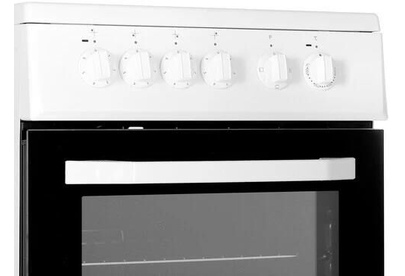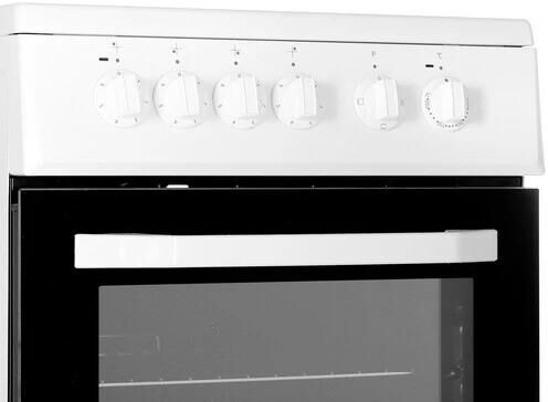 (ВхШхГ) 85х50х60 см. Цвет белый Варочная панель, духовка электрика. Управление механич.Рабочая поверхность стеклокерамика. Кол-во конфорок 4 шт. Объем духовки 60 л.Гриль электрический.Класс энергопотребления A.Максимальная температура 250 C°.Ящик для посуды.