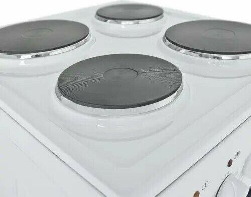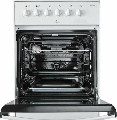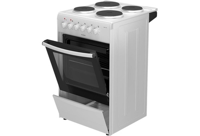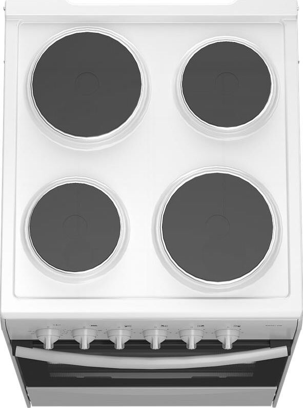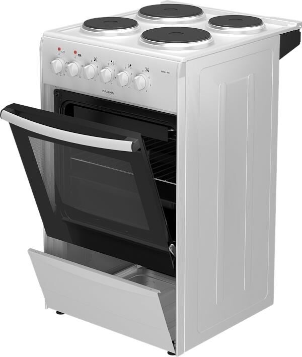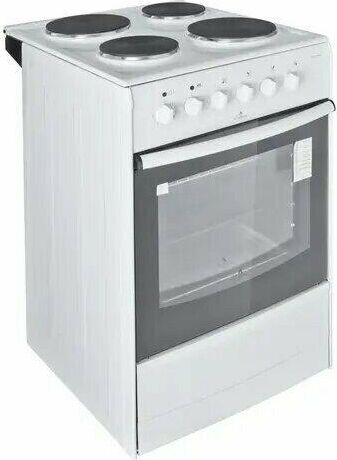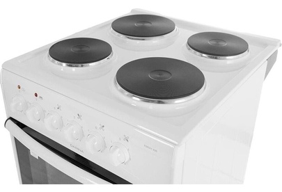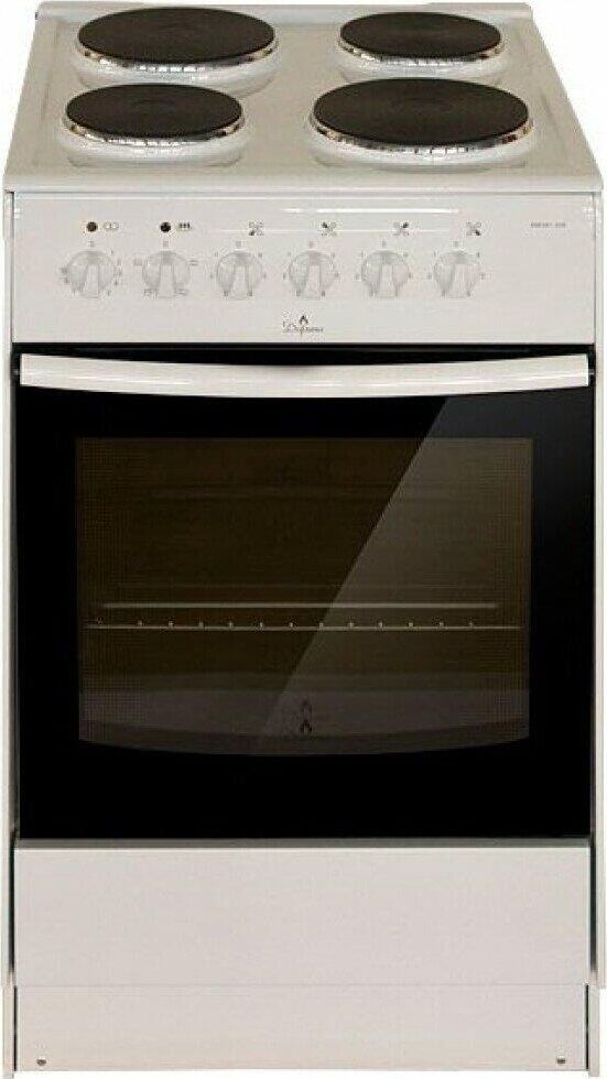 (ШхГхВ) 50x56x85 см,электрическая плита эмалированная рабочая поверхность,электрическая духовка 50 л.Количество режимов работы духовки 4.,механическое управление.Тип нагревательного элемента чугунные конфорки (4шт.)Хозяйственный отсек.Регулируемые опоры.