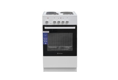 Размеры, мм - высота/ширина/глубина – 850/500/500 * Цвет - белый * 4 электрические конфорки 1,0/1,5/1,5/1,0 кВт * Объём духовки 43 л. * Большой противень * Малый противень * Решётка для жарки * Хозяйственный отсек *