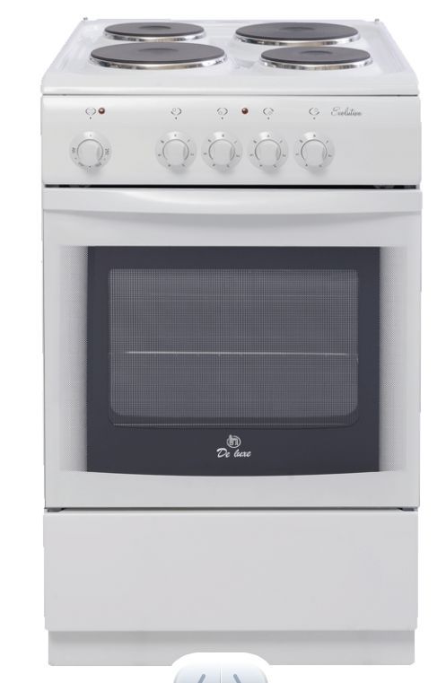 Габариты 850*500*600 Вес, кг - 39 Объём духовки 54 л. Основные характеристики варочной поверхности: 4 электрические конфорки 1,0/1,5/1,5/2,0 кВт Основные характеристики духового шкафа: Терморегулятор Комплектация: Большой противень Решётка для жарки Хозяйственный отсек Техническое описание: Цвет - белая