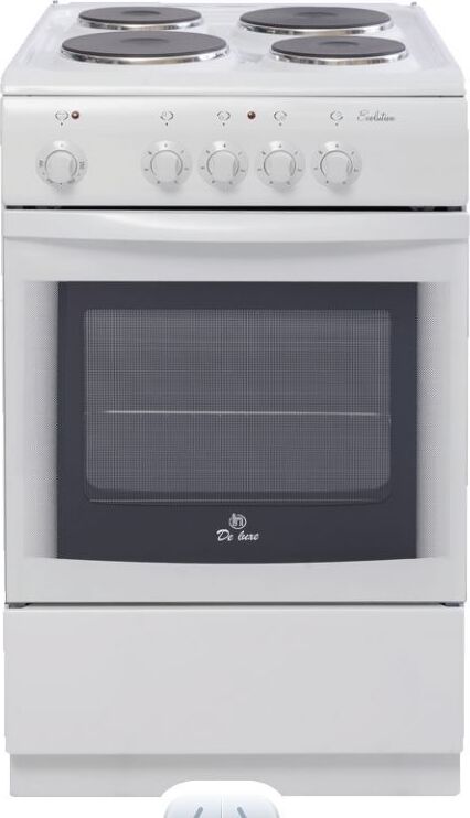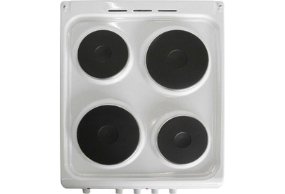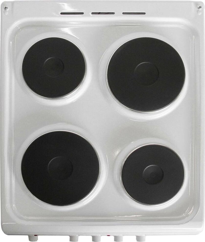 Габариты 850*500*600 Вес, кг - 39 Объём духовки 54 л. Основные характеристики варочной поверхности: 4 электрические конфорки 1,0/1,5/1,5/2,0 кВт Основные характеристики духового шкафа: Терморегулятор Комплектация: Большой противень Решётка для жарки Хозяйственный отсек Техническое описание: Цвет - белая