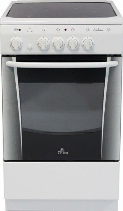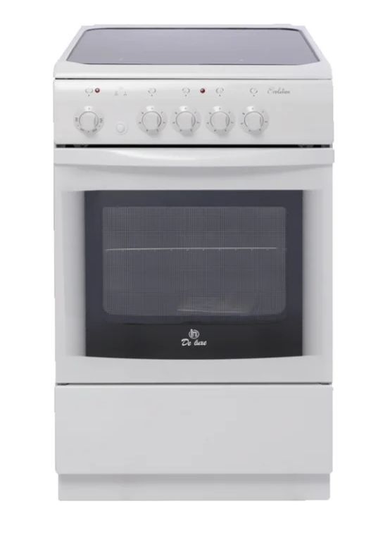 Габариты 850*500*600 Вес, кг - 35 Объём духовки 54 л. Основные арактеристики варочной поверхности: 4 электрические конфорки 1,2/1,2/1,7/1,7 кВт Стеклокерамика Основные характеристики духового шкафа: Терморегулятор Освещение Комплектация: Большой противень Малый противень Решётка для жарки Хозяйственный отсек Техническое описание: Цвет - белая