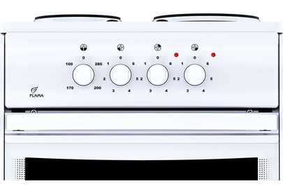 (ВхШхГ)85х50х60см.Плита электрическая.Цвет белый.Вес 32кг.Объем духовки 50л.Мощность духовки: ТЭН верхний 0,8кВт, ТЭН нижний 1,2кВт.Хозяйственный отсек.