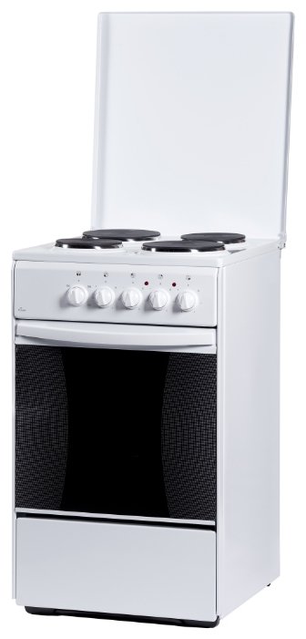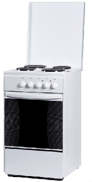 •электрическая плита * Цвет белый* •эмалированная рабочая поверхность * •4 конфорки * •электрическая духовка, 50 л * •ШхГхВ: 50x60x85 см * •механическое управление *