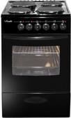 Рабочая поверхность: Рабочий стол: эмаль Количество конфорок: 4 традиционные Мощность передней левой конфорки: 1 кВт (145 мм) Мощность передней правой конфорки: 1.5 кВт (180 мм) Мощность задней левой конфорки: 1.5 кВт (180 мм) Мощность задней правой конфорки: 1 кВт (145 мм) Духовой шкаф: Объём: 57 л Мощность верхнего ТЭНа: 0.8 кВт Мощность нижнего ТЭНа: 1.2 кВт Температура регулируется от 50 до 300 °С Подсветка Дополнительная информация: Габариты: 85х50х60 см Дверца съёмная с двойным стеклом Выдвижной ящик для хранения кухонных принадлежностей Класс энергосбережения: A Плита комплектуются одним противнем, одной решеткой духовки, соединительным электрошнуром и розеткой При включении жарочного шкафа блокируется правая ближняя конфорка.