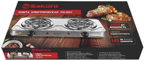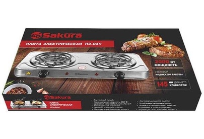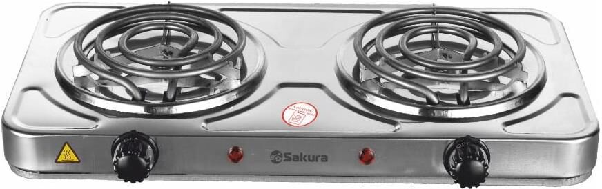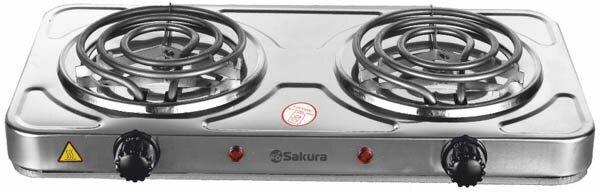 Мощность 2000Вт, 2 конфорки 145/145 мм, прочный корпус из нержавеющей стали, спиральный нагревательный элемент, регулируемый термостат, индикатор работы, длина шнура - 1м, цвет корпуса: нерж.сталь/черн.