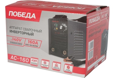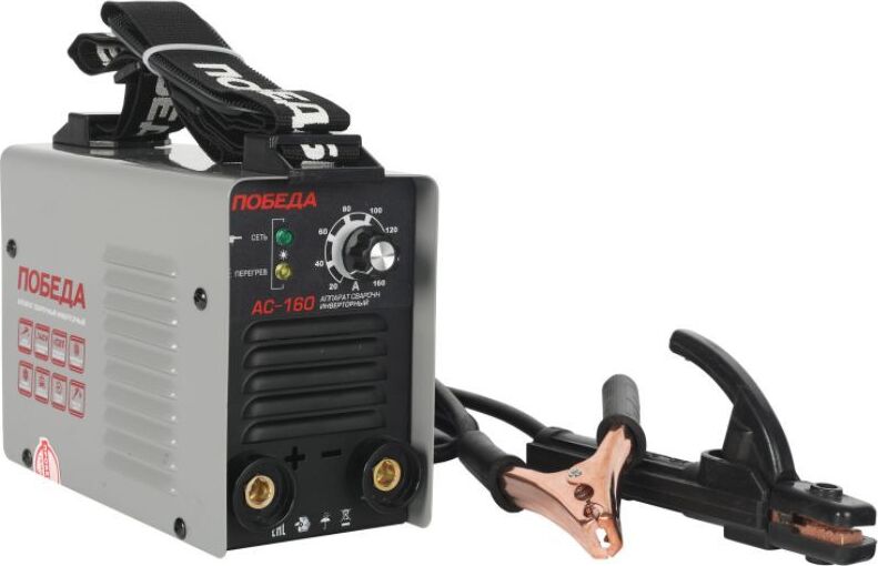 Сварочный аппарат инверторный, входное напряжение 1ф - 220В, потребляемая мощность - 3.9 кВА, сварочный ток мин/макс - 20/160А, ПВ-60%, диаметр электрода - 1.6/4 мм, комплектация: держатель электрода, клемма-земля. Функция антизалипания, горячий старт, жесткость дуги. Ремень для переноски. Вес 4.6 кг.