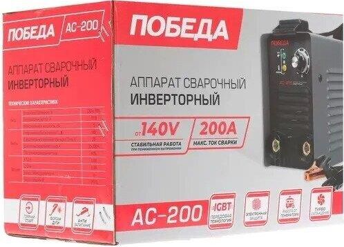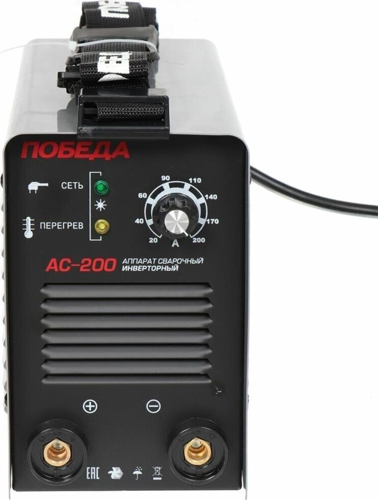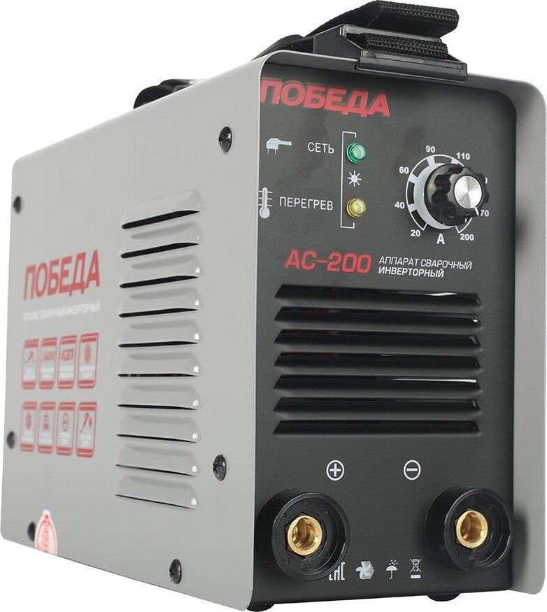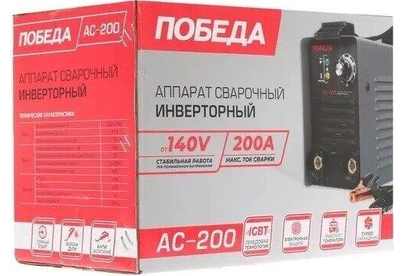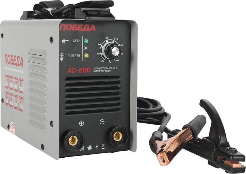 Сварочный аппарат инверторный, входное напряжение 1ф - 220В, потребляемая мощность - 5,0 кВА, сварочный ток мин/макс - 20/200А, ПВ-60%, диаметр электрода - 1.6/4 мм, комплектация: держатель электрода, клемма-земля. Функция антизалипания, горячий старт, жесткость дуги. Ремень для переноски. Вес 4.9 кг.