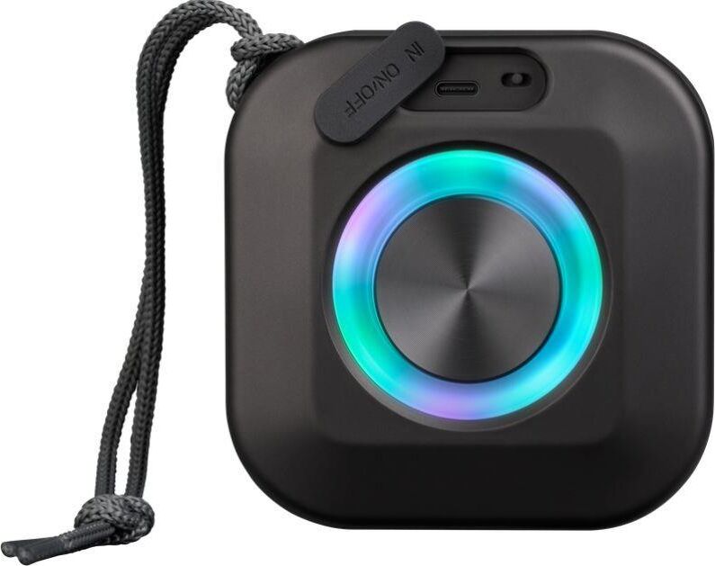 Bluetooth 5.3 - Новый стандарт увеличивает скорость передачи данных в 2 раза, радиус действия в 4 раза, а энергоемкость этого процесса существенно ниже, чем у предыдущих версий модулей беспроводной связи Светодиодная подсветка Разъем TYPE C - Штекер можно подключать в любом положении, не опасаясь повредить контакт, что гарантирует значительно более долгий срок службы разъема Компактный размер - Отлично подходит для путешествий Встроенный пассивный излучатель на задней панели - Улучшает качество воспроизведения, усиливает басы и глубину звука Удобный подвес для переноски