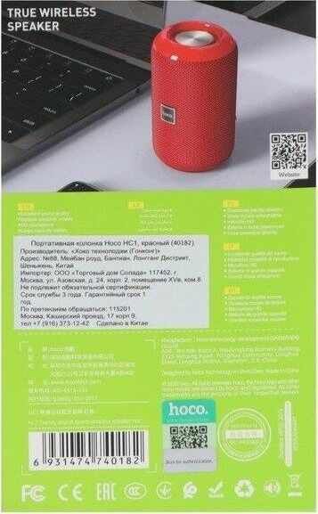 Портативная акустика HOCO HC1 Bluetooth-колонка Trendy Sound (красный)