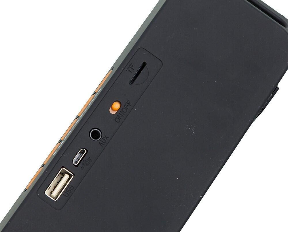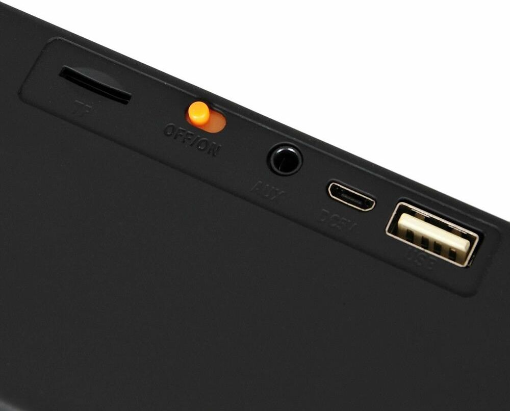 звук: стерео суммарная мощность: 6 Вт питание: автономное беспроводная связь: Bluetooth разъемы : USB Type-A (для флэшки), вход аудио mini jack 3.5 mm особенности: FM-радио, встроенный микрофон, поддержка microSD, режим Power Bank