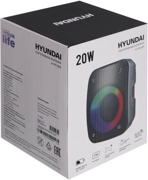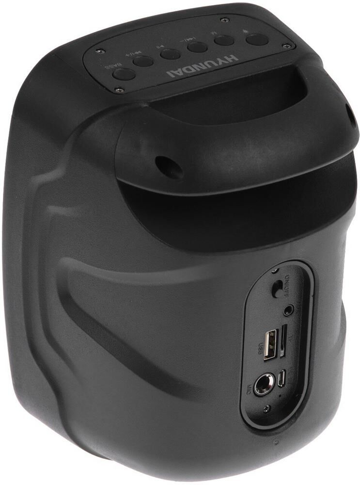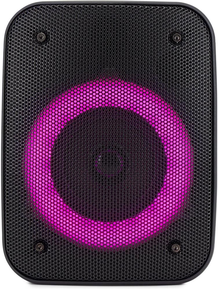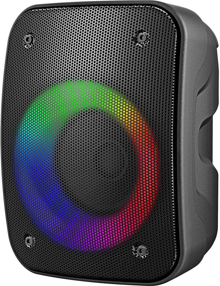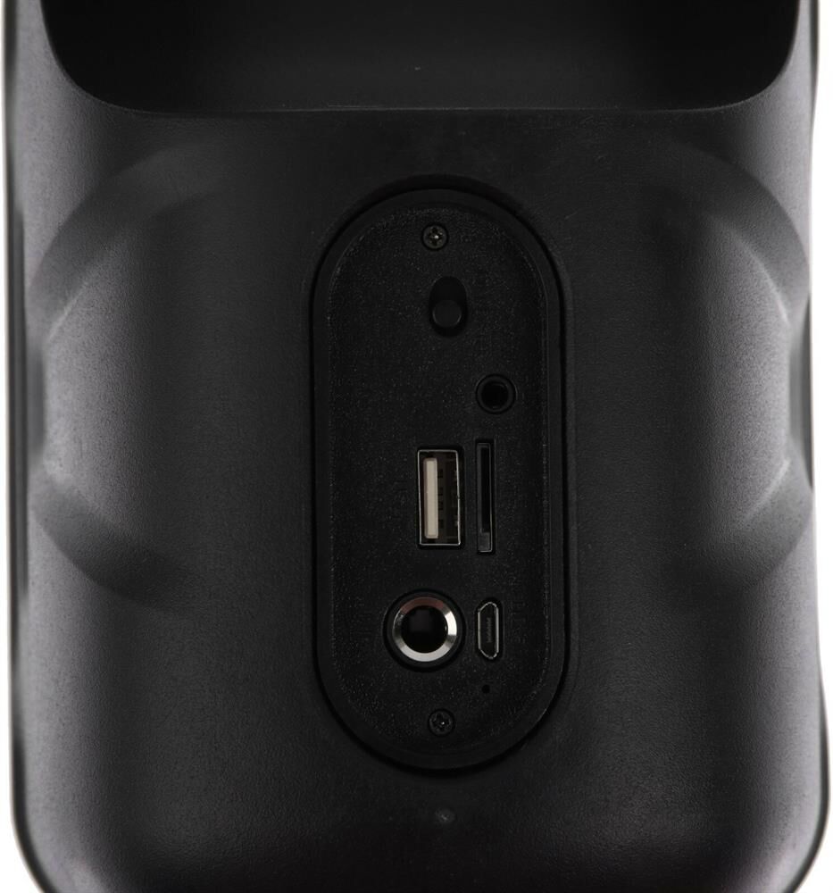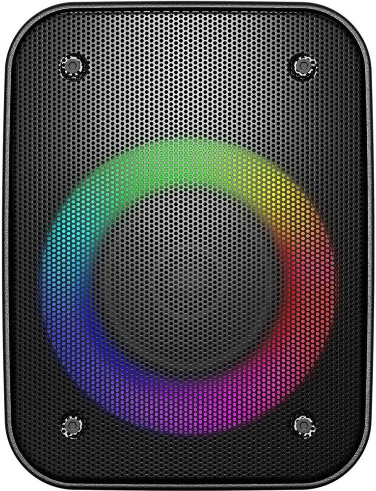 Воспроизведение аудиофайлов по Bluetooth v. 5.0;; Количество динамиков: 1 динамик;; Размер динамика: 3”;; FM- радио (87.5-108MHz);; Пиковая музыкальная выходная мощность: 20Вт;; Частотный диапазон: 20 Гц - 20000кГц;; Отношение сигнал/шум: 96 дБ;; Воспроизведение с USB2.0, TF-карта (до 32GB);; Поддерживаемые аудио-форматы: MP3;; Аудиовход AUX-IN (3.5mm jack);; Встроенная Li-Ion батарея: 1500mAh, 3.7V;; Время работы от аккумулятора: до 7 часов;; RGB подсветка динамика;; Функция True Wireless Stereo;; Микрофонный вход: 6.35mm jack;; Комплектация: USB кабель, инструкция;; Разъем для подключения внешнего источника питания 5В (Micro USB);; Размер устройства: 176x134x124мм;; Вес устройства: 0.65 кг;; Цвет: черный.