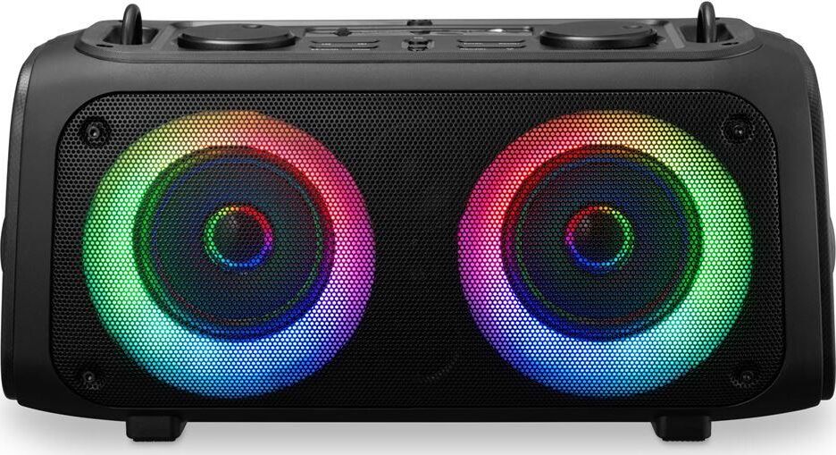 ЗвукСтерео Суммарная мощность40 Вт ПитаниеАвтономное, от электросети Беспроводная связьBluetooth РазъемыUSB Type-A (для флэшки), вход аудио Разъем для зарядкиMicroUSB Время работы10 ч Емкость аккумулятора3600 мА·ч ОсобенностиFM-радио, встроенный микрофон (функция HandsFree), дисплей, поддержка microSD, ремешок, световые эффекты