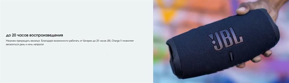 Время воспроизведения музыки (ч) 20 Выходная мощность (Вт) 40 Частотный диапазон динамика 60 Hz - 20k Hz Габариты (см) 22 x 9.6 x 9.3 Габариты (дюймы) 8.7 x 3.76 x 3.67 Вес (кг) 0.96 Вес (фунты) 2.11 Профили Bluetooth A2DP 1.3, AVRCP 1.6 Диапазон передатчика Bluetooth 2400 MHz - 2483.5 MHz Модуляция передатчика Bluetooth GFSK GFSK, 4 DQPSK, 8DPSK Мощность передатчика Bluetooth ? 20 dBm (EIRP) Версия Bluetooth 5.1 Батарея и аккумулятор Время заряда аккумулятора (ч) 4 Функции Bluetooth Да Кабель для зарядки Да Powerbank Да Защита от воды Да Беспроводные Да Перезаряжаемый аккумулятор Да JBL PartyBoost Да. До 20 часов работы в режиме воспроизведения и удобная зарядка внешних устройств.