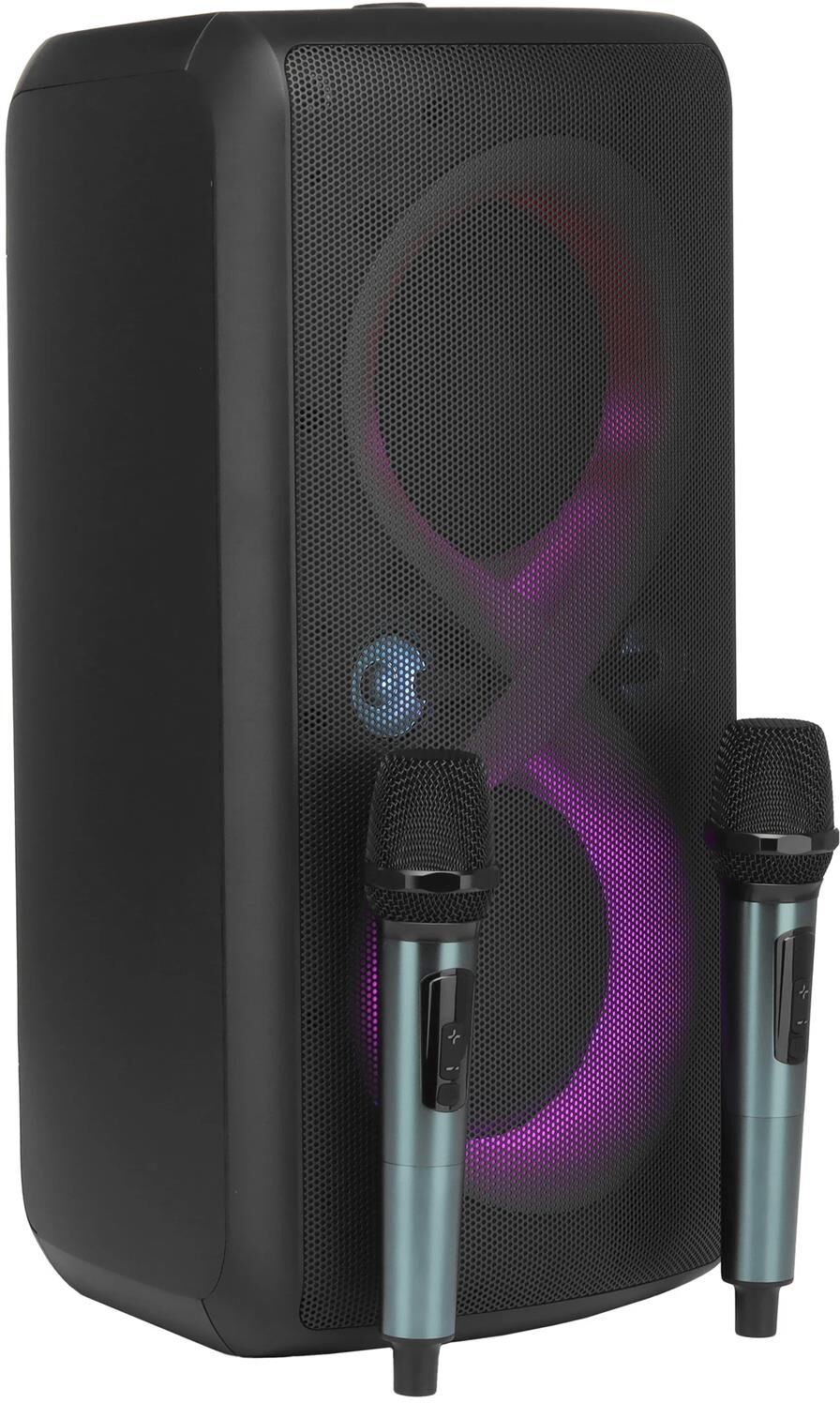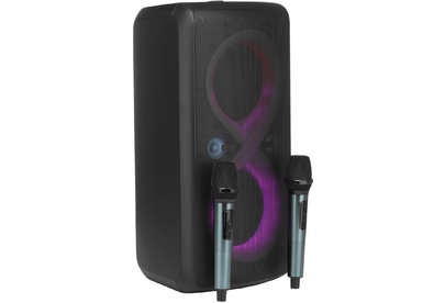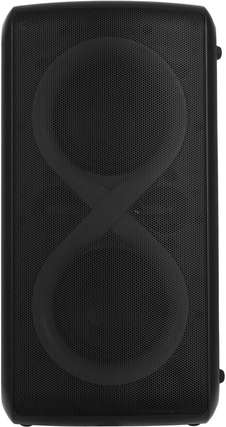 Портативная акустическая система MONSTER Cycle Plus, чёрная (в комплекте 2 микрофона). Самая мощная акустическая система в линейке, в комплекте два беспроводных микрофона, RGB Color Lighting Effects. Bluetooth - v 5.3, output power- 120W, speaker size- 165mm*2 + 51mm*2,input-BT/AUX/TF/U Disk/MIC/GUITAR, battery-11.1V/6000mAh,water resistance-IPX4