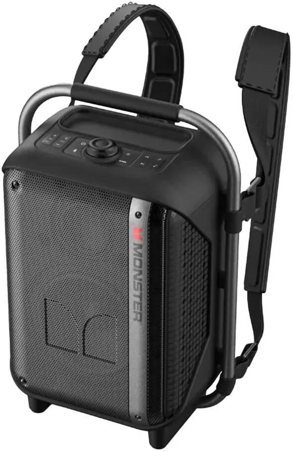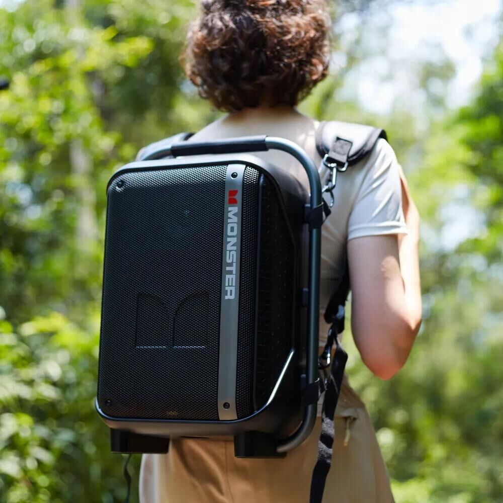 Портативная акустическая система MONSTER Traveler (MS22142), чёрная. Мощная акустическая система в форм-факторе рюкзака, прочные лямки и удобная ручка для переноски, - идеальный вариант для любителей отдохнуть на природе.bluetooth v 5.3/outpoot power RMS 80W (peak 160W)/speaker size 165mm*1 + 76mm*2/inpoot BT/AUX/TF/U disk/MIC/Guitar/battery 11.1V/4000mAh/water resistance IPX5