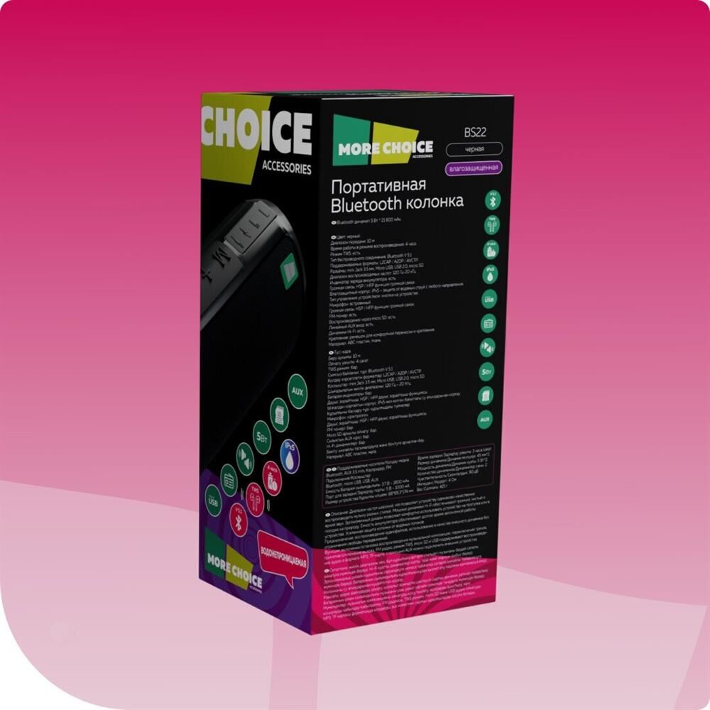 Портативная акустика MORE CHOICE (4610196400872) BS22 Black