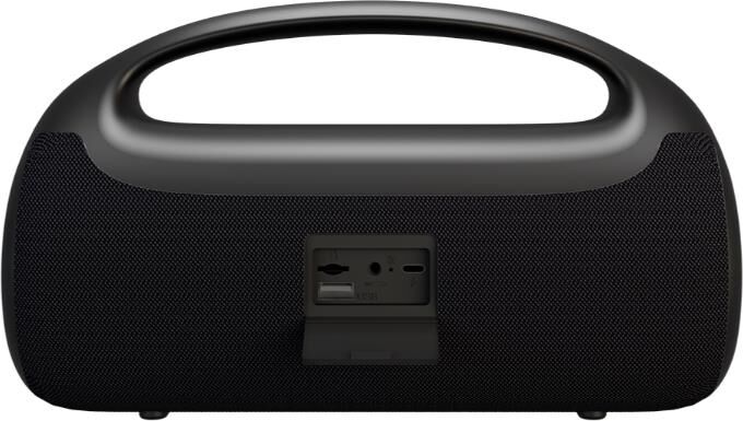 Звуковая схема: 2.0 Выходная мощность: 30 Вт Размер динамиков: 2*2.6" + 2 пассивных излучателя Bluetooth 5.3 Поддержка USB/microSD Воспроизведение форматов MP3, WAV Эквалайзер: 5 режимов Аудиовход AUX-in Функция Hands Free Функция True Wireless Stereo Защита от воды IPX5 Светодиодная подсветка Встроенная батарея: 4400 мАч Время работы от аккумулятора до 14 часов* Цвет: черный Габариты: 280*165*120