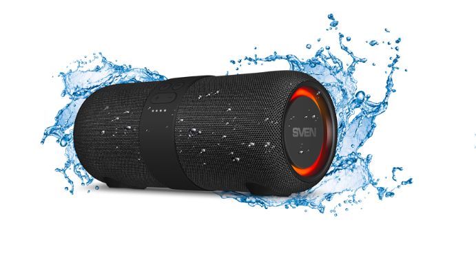 Портативная акустика SVEN PS-340, черный, акустическая система 2.0, мощность 2x12 Вт (RMS), Waterproof (IPx6), TWS, Bluet