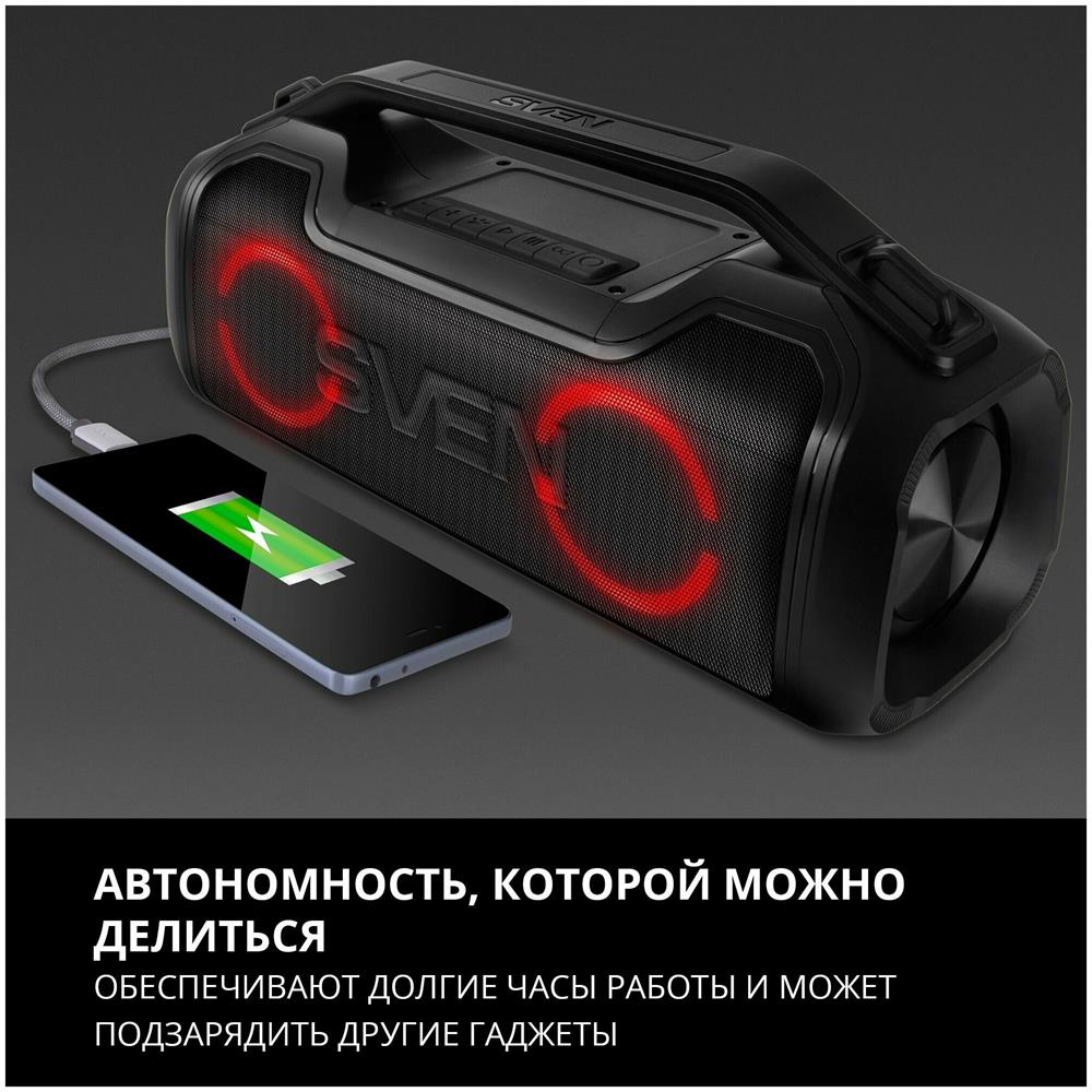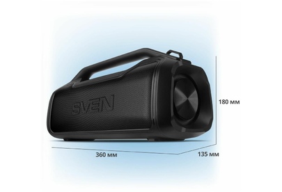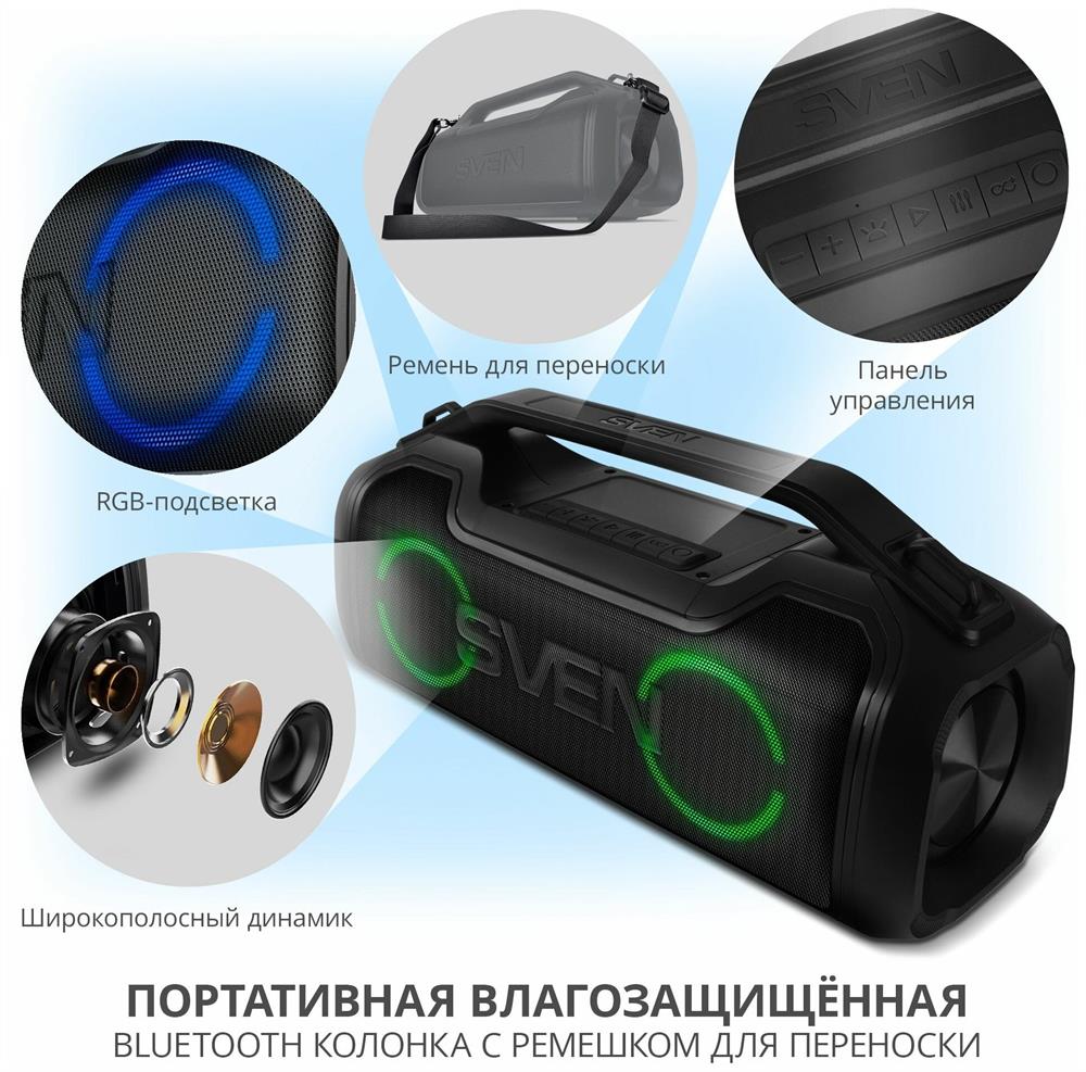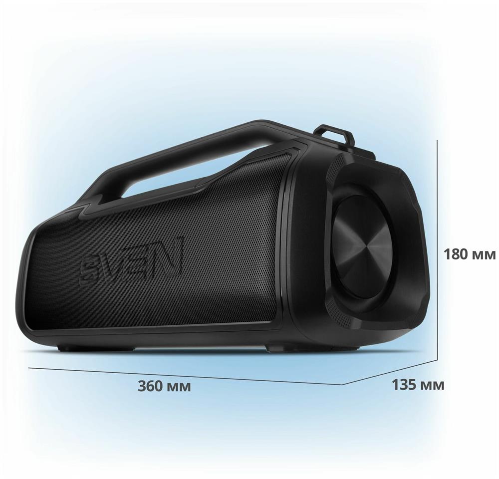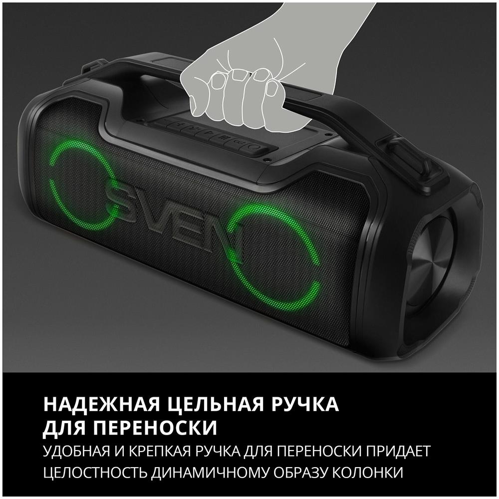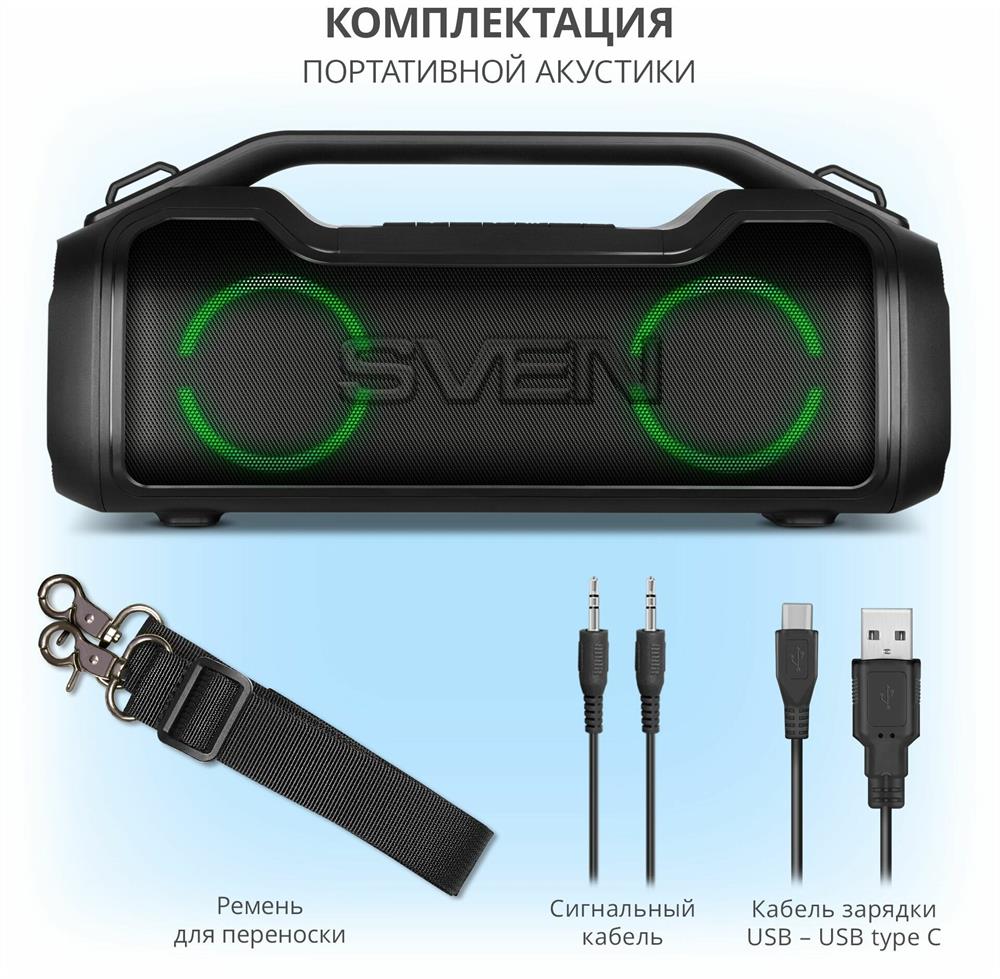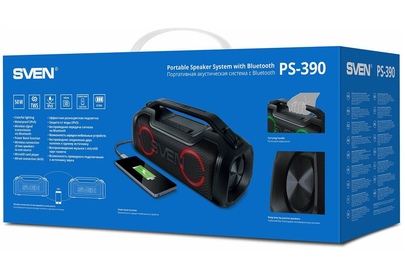 Портативная акустика SVEN PS-390, черный, акустическая система 2.0, мощность 2x25 Вт (RMS), Waterproof (IPx5), TWS, Bluet
