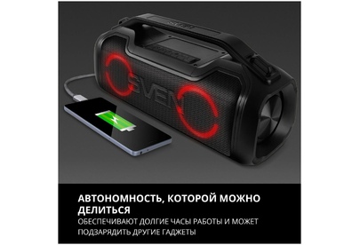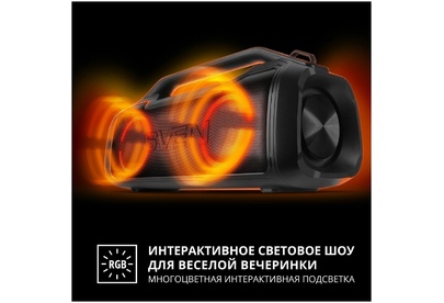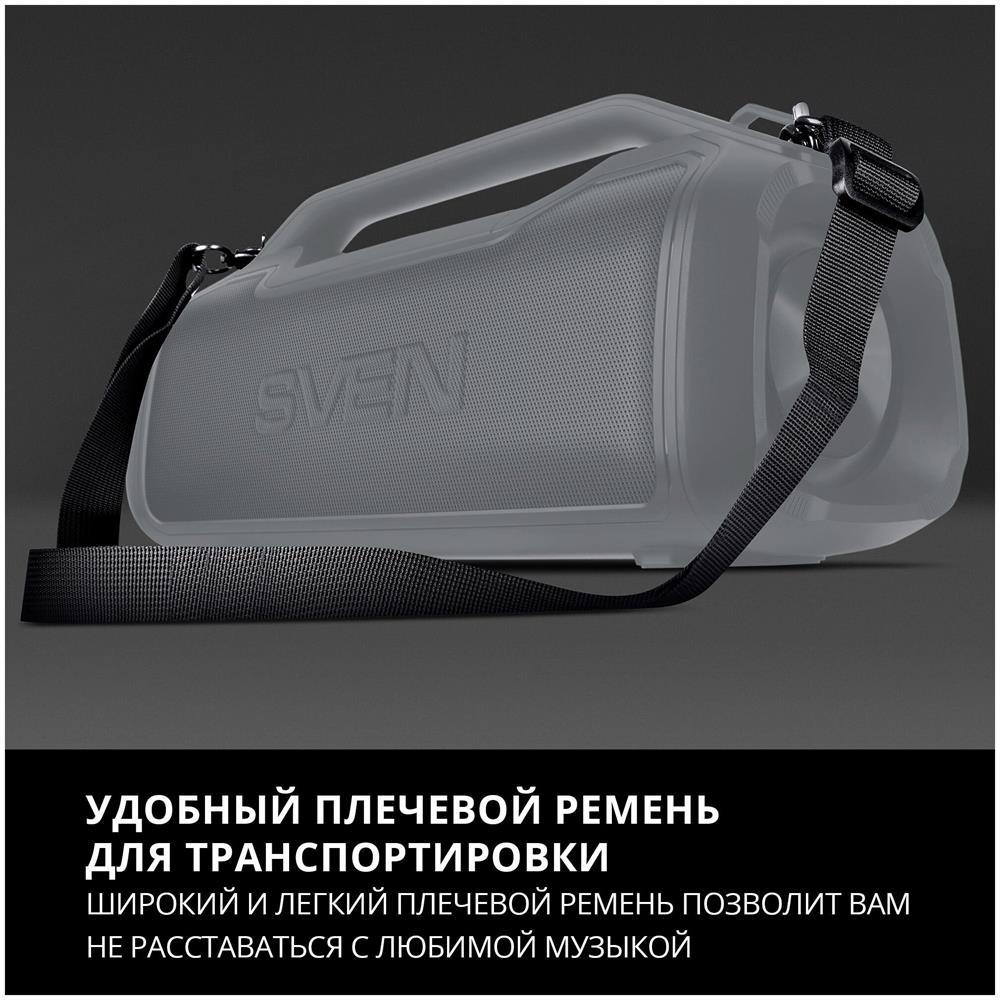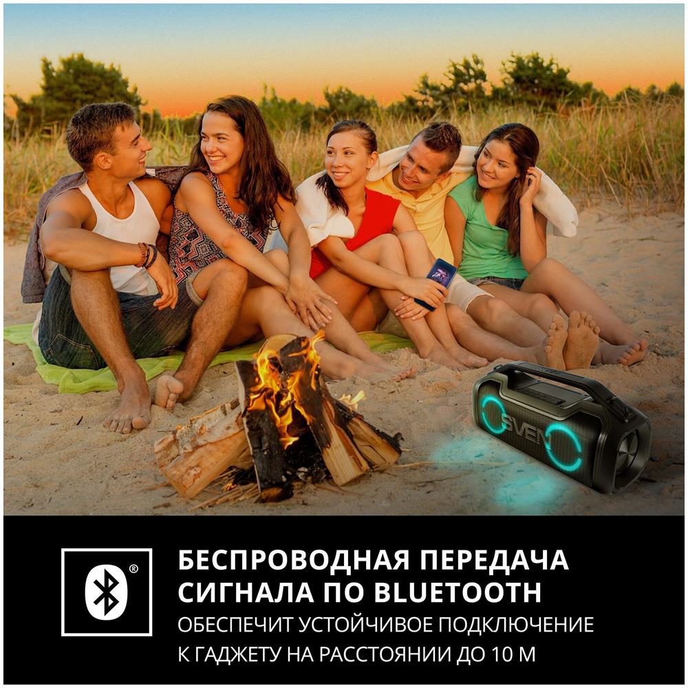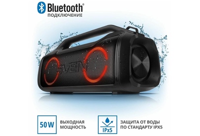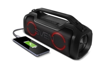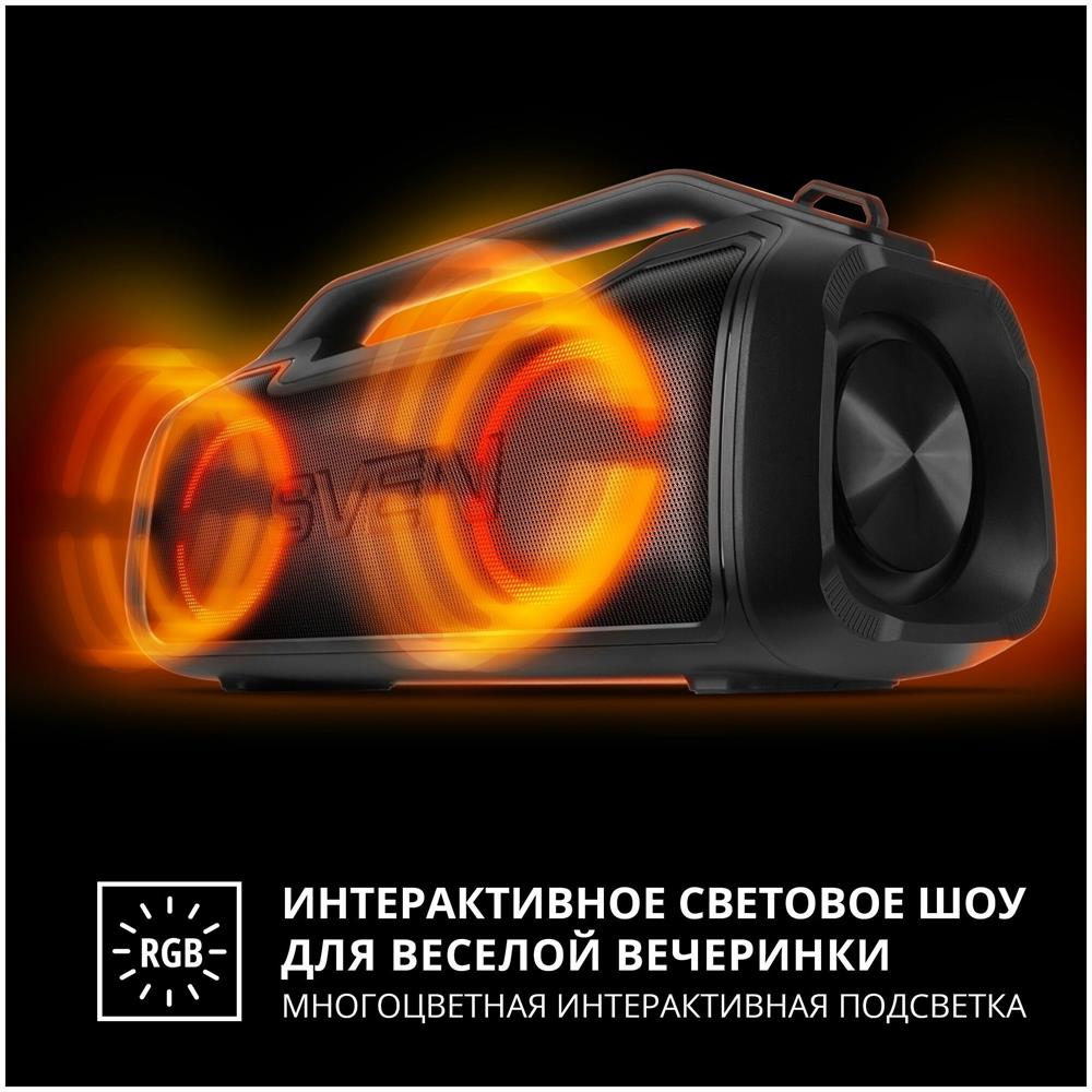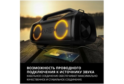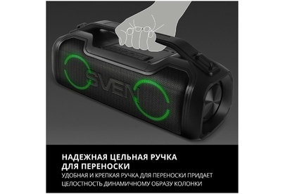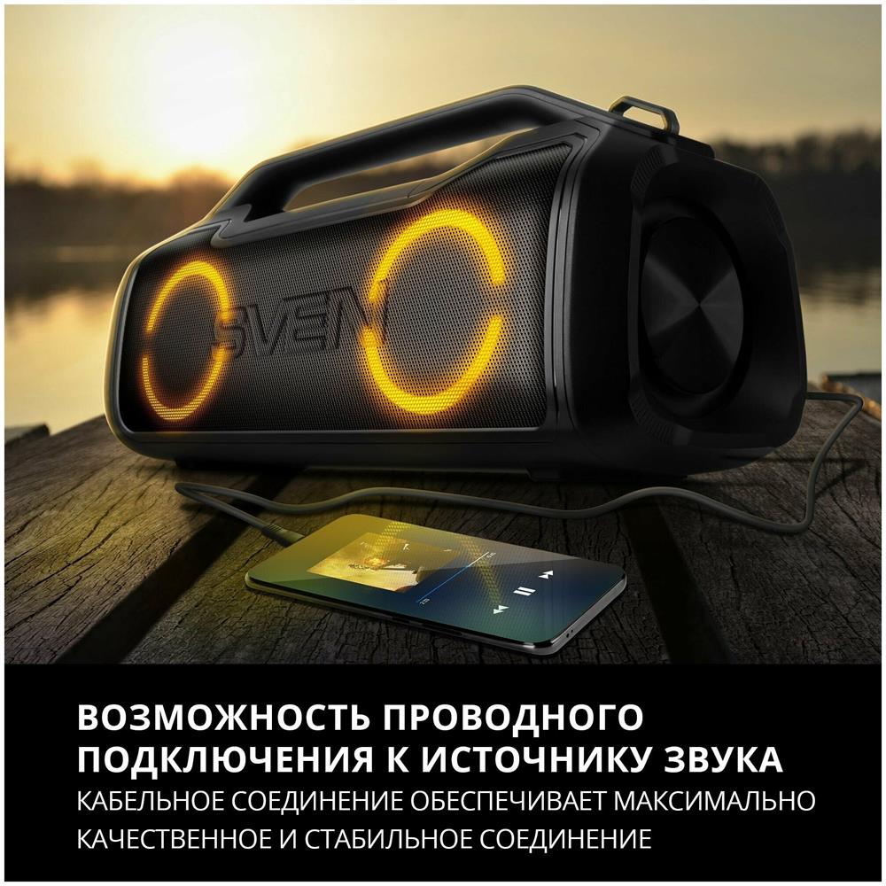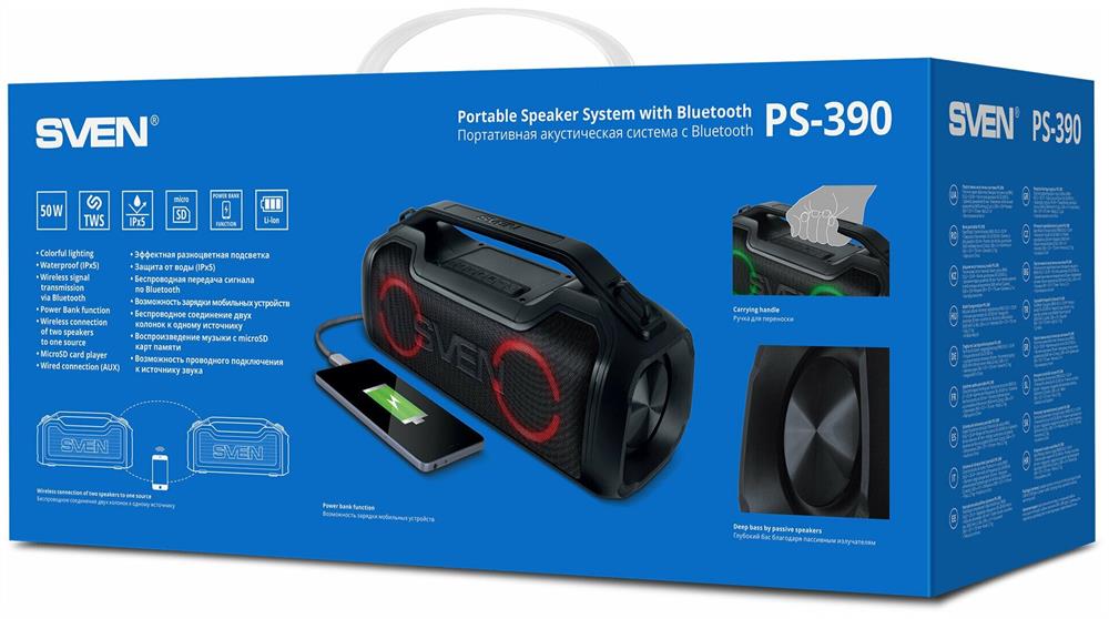 Портативная акустика SVEN PS-390, черный, акустическая система 2.0, мощность 2x25 Вт (RMS), Waterproof (IPx5), TWS, Bluet