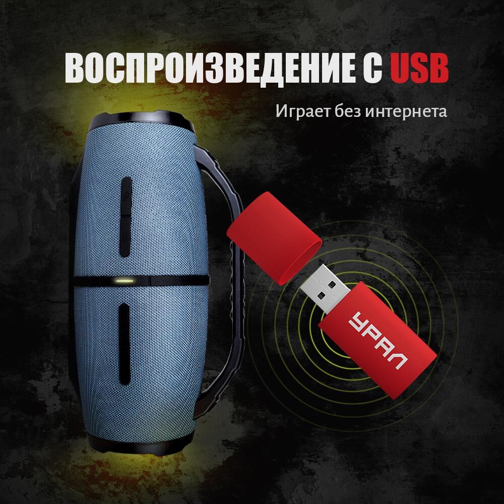 Степень защиты корпуса от пыли и влаги IP 67 Максимальная выходная мощность, Вт 2x20+2x10 Диапазон частот 50-20000 Отношение сигнал/шум, дБ, не менее 80 Bepcия Bluetooth 5.0 Профили Bluetooth.AVCR V 1.6, A2DP V1.3, HSP V1.2 Аудиокодек Bluetooth SBC Дальность действия Bluetooth, м, не менее 10 Расстояние между АС врежиме TWS, м, не более 5. Напряжение встроенного аккумулятора, В.7,4. Ёмкость встроенного аккумулятора, мАч. 5000 Типовое время работы без подзарядки в режиме воспроизведения при уровне громкости 50%, ч. 11 Время заряда встроенного аккумулятора, ч. 5-6. Разъем для подключения внешнего источника питания.USB Type-C. Напряжение внешнего источника питания, В. 5 Типоразмер громкоговорителя, мм. 2x96+2x32 Первая Русская мобильная колонка с FM радио и воспроизведением с USB. При объективном прослушивании большинство участников тестирования отдали предпочтение УРАЛ ГР-007 в сравнении с JBL Extreme 3.