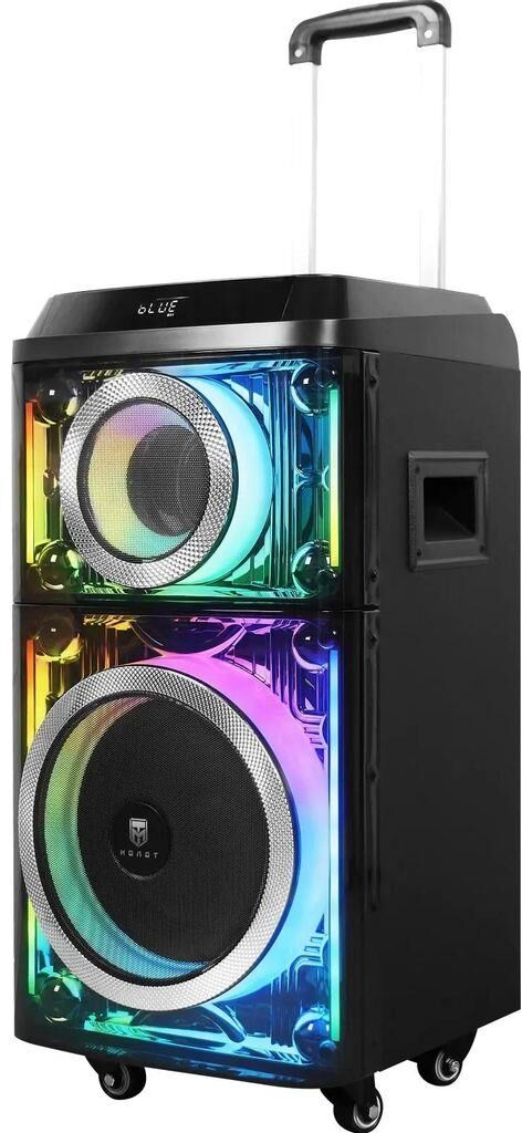 Суммарная звуковая мощность: 1200. Цвет: черный. Акустический тип: 1.1. Тип электропитания: от сети/от аккумулятора. Поддержка карт памяти: есть. Тип карт памяти: micro SD, TF card. Интерфейс подключения: Bluetooth/3.5Jack/USB-C. Радиус действия Bluetooth, до: 15. Емкость аккумулятора: 7000. Стерео-вход AUX INPUT: есть. Отношение сигнал/шум: 80. Расположение регуляторов: на верхней панели. Разъем USB: 1. Версия Bluetooth: v5.0. Встроенный радиоприемник: есть. Диапазоны радиоприемника: FM. Частоты FM-диапазона: 87,5 108. Влагозащита: есть. Класс влагозащиты: IP56. Тип аккумулятора: Li-Ion. Время работы: 9. Время зарядки: 4. Вес: 14800. Наличие подсветки: ДА. Тип подсветки: светодиодная. Возможность одновременного подключения двух колонок: есть. Дисплей: есть. Часы: есть. Комплектация: Микрофон, пульт. Материал корпуса: пластик. Габариты упаковки (ед) ДхШхВ: 0.805x0.41x0.4. Вес упаковки (ед): 15.5. Страна производства: Китай. Гарантия: 12 мес.. Частотный диапазон: 60 Гц - 18кГц. Размеры (ШхВхГ): 325 x 675 x 360