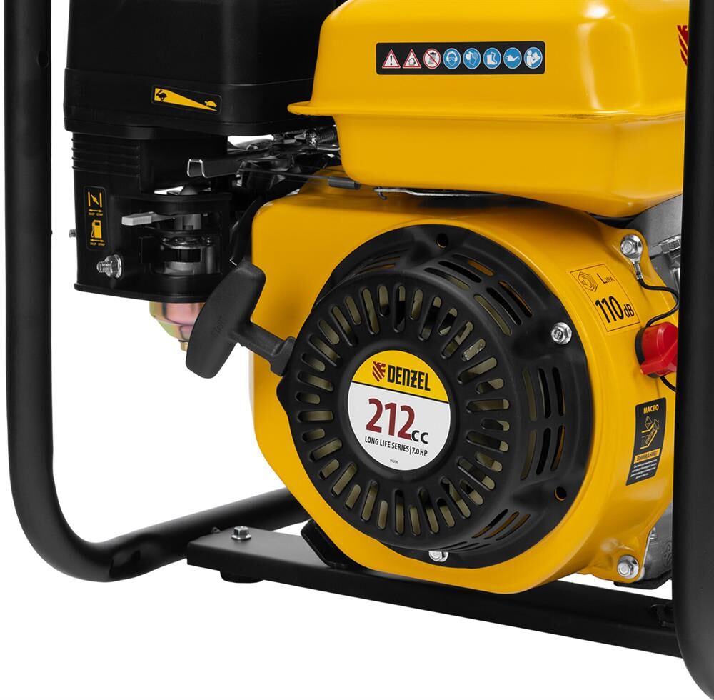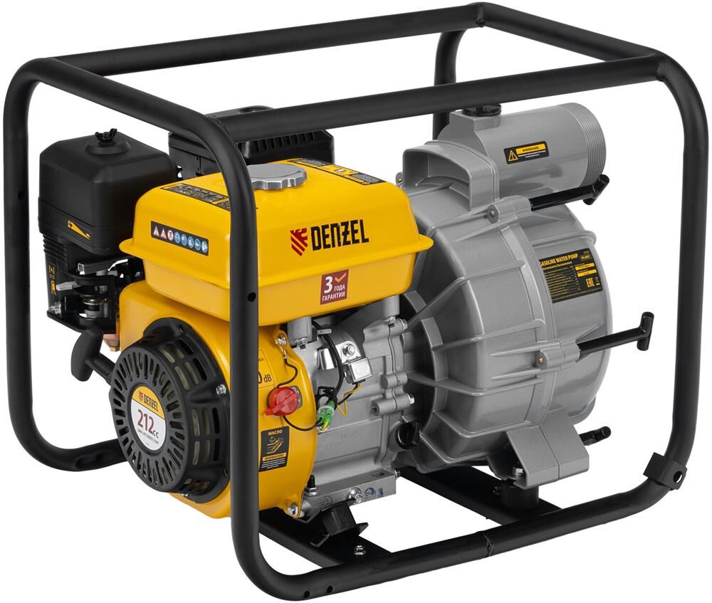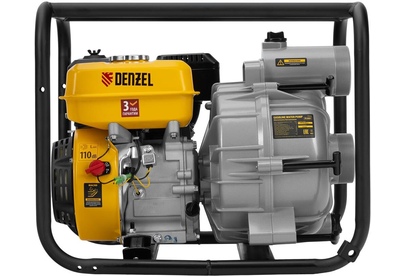 Бензиновая мотопомпа Denzel PX-80D7 99206 с двигателем мощностью 7 л. с. и штуцерами диаметром 3" обеспечивает напор 30 м и применяется для откачки грязной воды со скоростью 1300 л/мин из затопленных помещений, а также бассейнов, котлованов, траншей, погребов, колодцев глубиной до 8 м. Диаметр входного и выходного отверстий составляет 80 мм, что обеспечивает высокую производительность. Мотопомпа оптимальна для использования во время земляных работ, т. к. может работать с сильно загрязненной водой, содержащей фракции диаметром до 30 мм. Также подходит для подачи чистой воды на строительную площадку, небольшое предприятие, дачный участок и в систему полива.ПреимуществаНадежность и долговечность — двигатель Denzel Long Life из высококачественных комплектующих обеспечивает длительную стабильную работу.Низкий расход топлива — бак объемом 3 л позволяет работать до 1,5 часов без дозаправки.Защита двигателя — при низком уровне масла мотопомпа автоматически отключается для пре