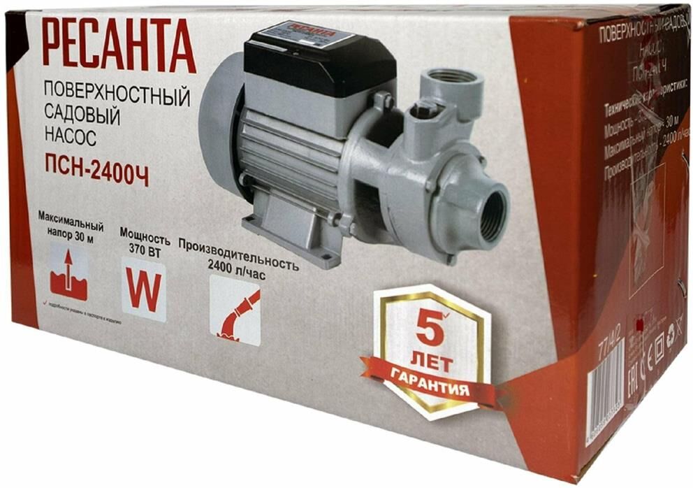 Поверхностный насос РЕСАНТА Насос вихревой ПСН-2400Ч 370Вт 2400л/час (77/4/2)