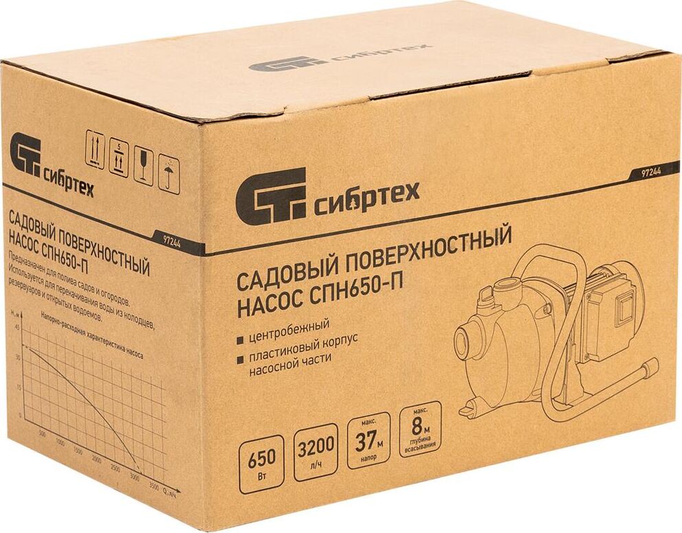 Поверхностный насос СИБРТЕХ СПН650-П Садовый поверхностный насос 97244